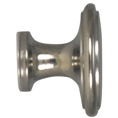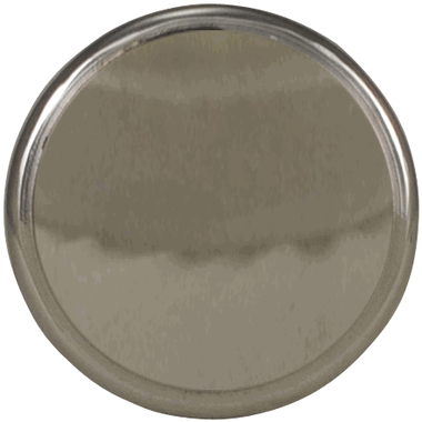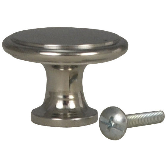 1 1/2 Inch Brass Flat Top Cabinet Knob (Polished Chrome Finish) - measures 1 1/2 inch in diameter with a projection of 1 1/8 inch. This comes complete with the mounting hardware. Available in several different finishes including polished brass, antique brass, and Black Bronze.