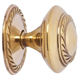 1 1/2 Inch Brass Round Knob with Georgian Roped Border (Polished Brass Knob)