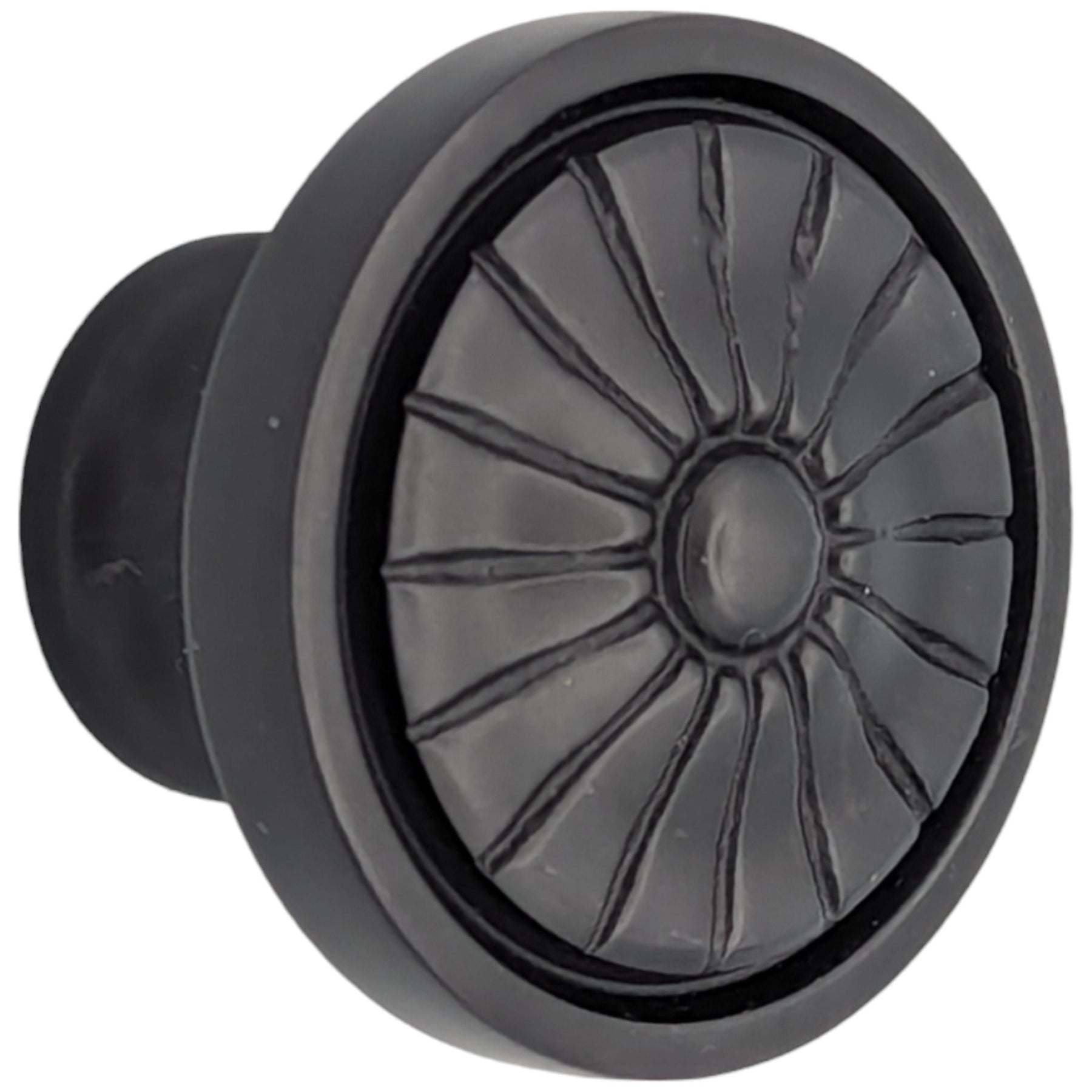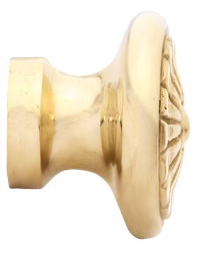 This cabinet knob measures approximately 1 1/3 inches in diameter with a projection of approximately 1 inches.