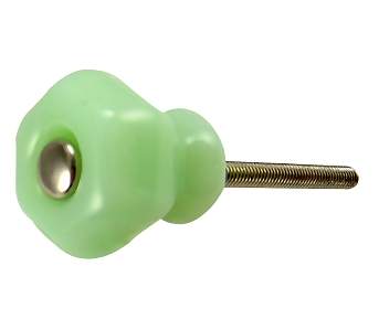 Glass specialty drawer knobs for end tables, specialty drawer knobs, small furniture drawers, medicine cabinets and restoration of vintage furniture. These glass cabinet door hardware measure nominally 1 inch (25 mm) in diameter (measured point to point on the hexagonal at the widest point) and they have a projection of 1 inch (25 mm). Sold individually with the removable Chrome 2 1/2 inch (64 mm) hardware. Brass hardware is also available.