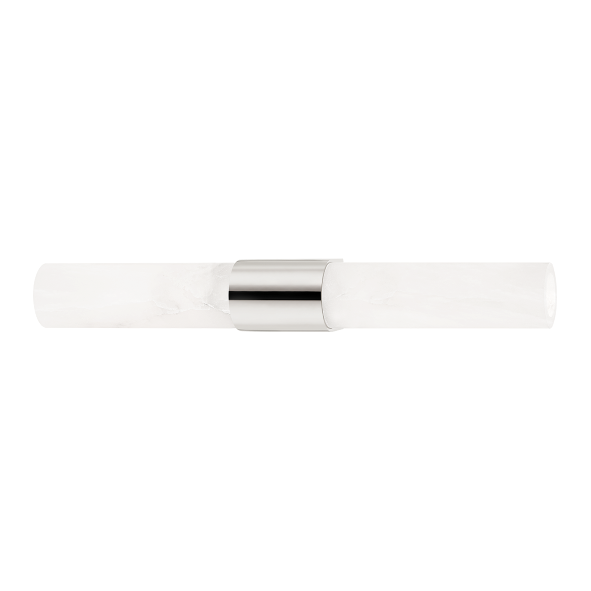 The Ellington Wall Sconce by Hudson Valley Lighting combines modern elegance with functionality. This stunning fixture measures 3.25 inches in diameter and stands 24 inches tall, with a sleek 3.75-inch extension. It features a beautiful white alabaster shade that softens the light, accommodating two E26 medium base bulbs with a maximum wattage of 8W each (bulbs not included). The fixture is available in an Aged Brass (AGB) or Polished Nickel (PN) finish, adding a touch of sophistication to any space. Designed for versatility, it is UL Damp rated, making it suitable for areas with moderate moisture.