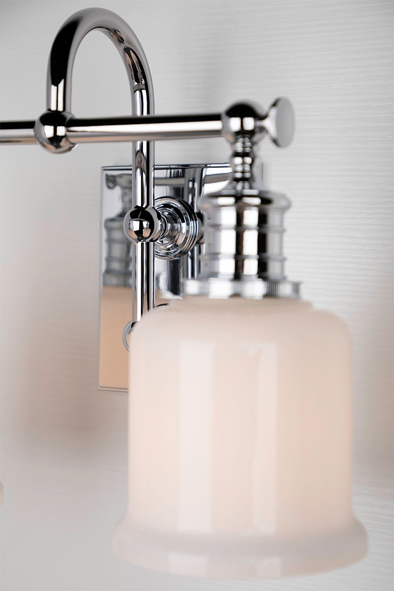 The Keswick Wall Sconce by Hudson Valley Lighting is a sophisticated lighting fixture that combines elegance with functionality. This sconce features a beautiful opal glossy glass shade and requires two E26 medium base bulbs (not included), with a maximum wattage of 75W each. With dimensions of 13.50 inches in width, 11.00 inches in height, and an 8.00-inch extension from the wall, it makes a striking addition to any space. The sconce is available in multiple finish options including Aged Brass, Old Bronze, Polished Chrome, and Satin Nickel, allowing it to seamlessly integrate into various decor styles. Designed for durability, it is UL Damp rated, making it suitable for use in humid environments.