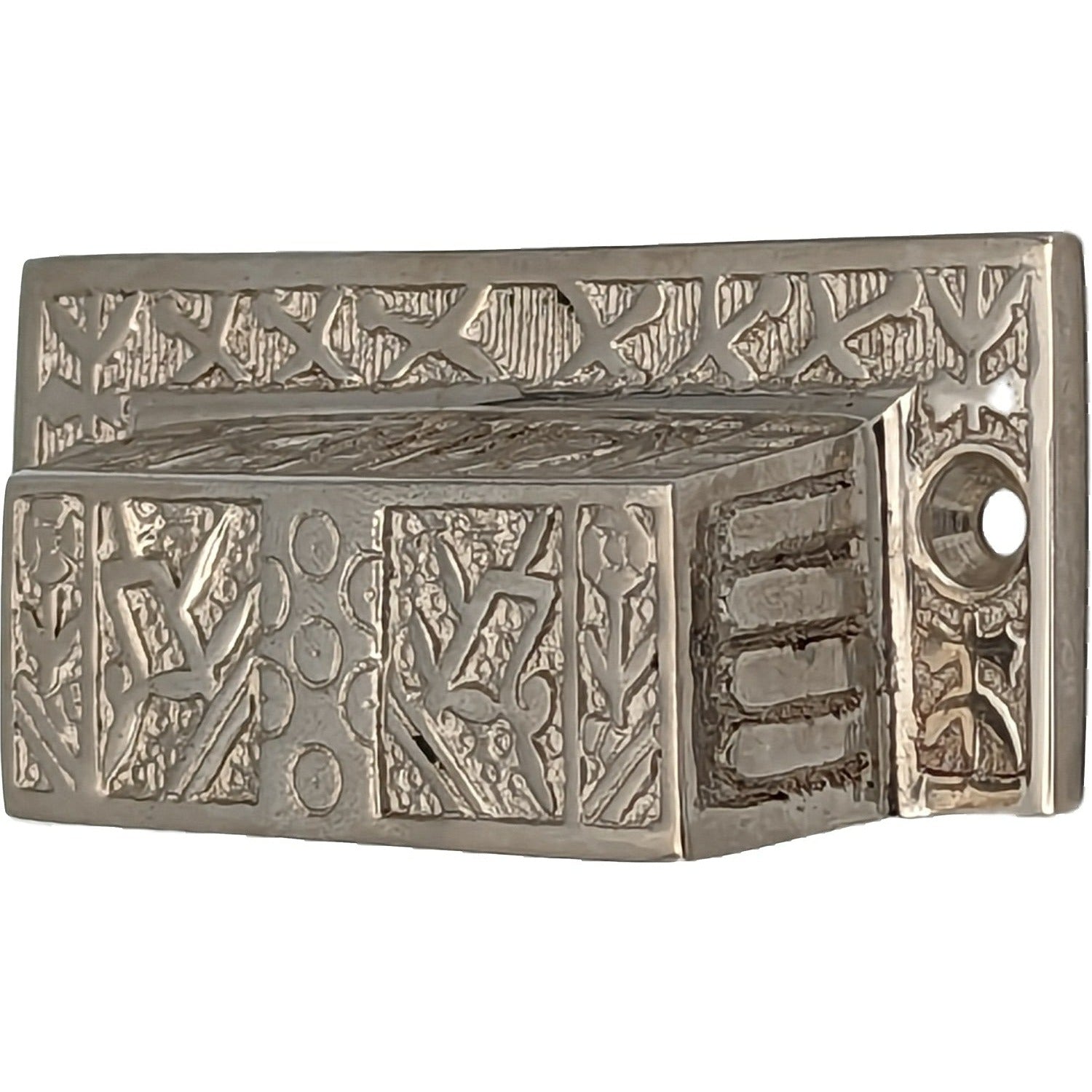 Measures 3 1/2 inches long and 1 1/4 inches tall. Center to center mounting distance is 3 inches (76.2 mm 3.00 c-c). Highly ornate and hand finished detailing.