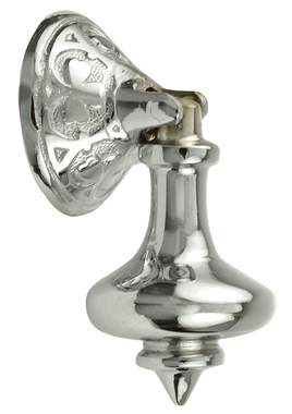 Measures 3 inches long with a 1 5/8 inch backplate. Fine detailing with this elegant drop pull. Comes complete with the mounting hardware. This pull is perfect for the Jacobean style and it is available in several finishes including polished brass, antique brass, Black Bronze, polished chrome and Satin Nickel.