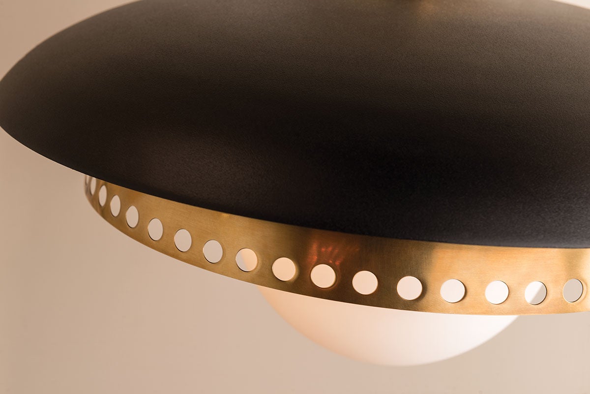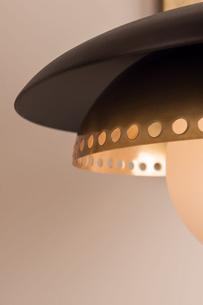 The Herkimer pendant light by Hudson Valley Lighting features a stunning opal acid-etched glass shade, offering a warm and inviting glow. It accommodates one E26 medium base bulb with a maximum wattage of 75W (bulb not included). With a width of 17.50 inches, a height of 17.00 inches, and a 20.00-inch extension, this pendant offers both style and functionality. Its UL Damp rating makes it suitable for humid environments, while the aged brass finish adds a touch of elegance to any space.