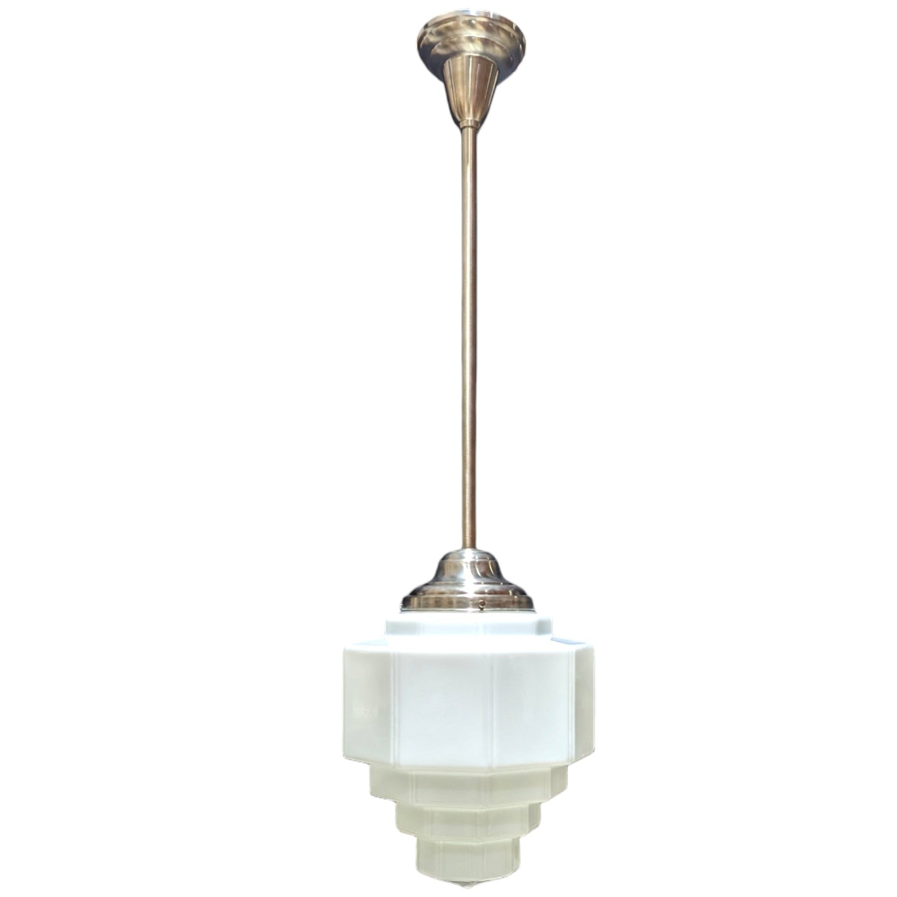 The 39 1/2 Inch Manhattan Skyscraper Grandeur Style Bar Light, with its graceful traditional lines and Satin Nickel finish, will bring sophistication and grandeur to your home. Its tasteful design and stately construction make this light fixture the perfect centerpiece in any room.