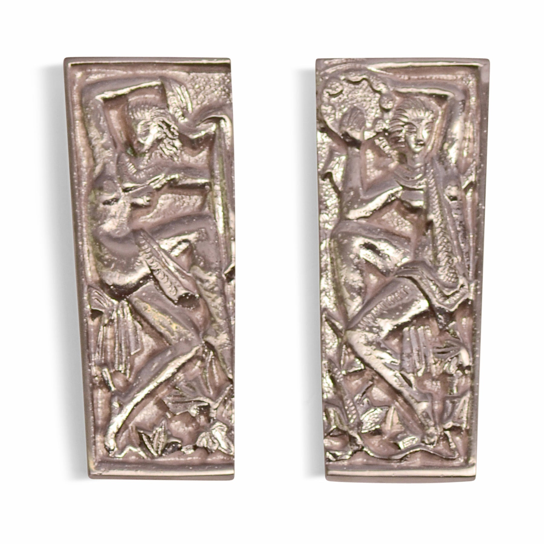 4 3/8 Inch Overall Solid Brass Grecian Dancing Ladies Cabinet Pull Set (Satin Nickel Finish)