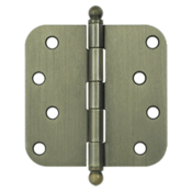 4 Inch x 4 Inch Ball Tip Steel Hinge (Antique Brass Finish) - Sold in Pairs - This hinge measures 4 inches tall by 4 inches wide with 5/8 radius corners. Comes complete with mounting hardware.