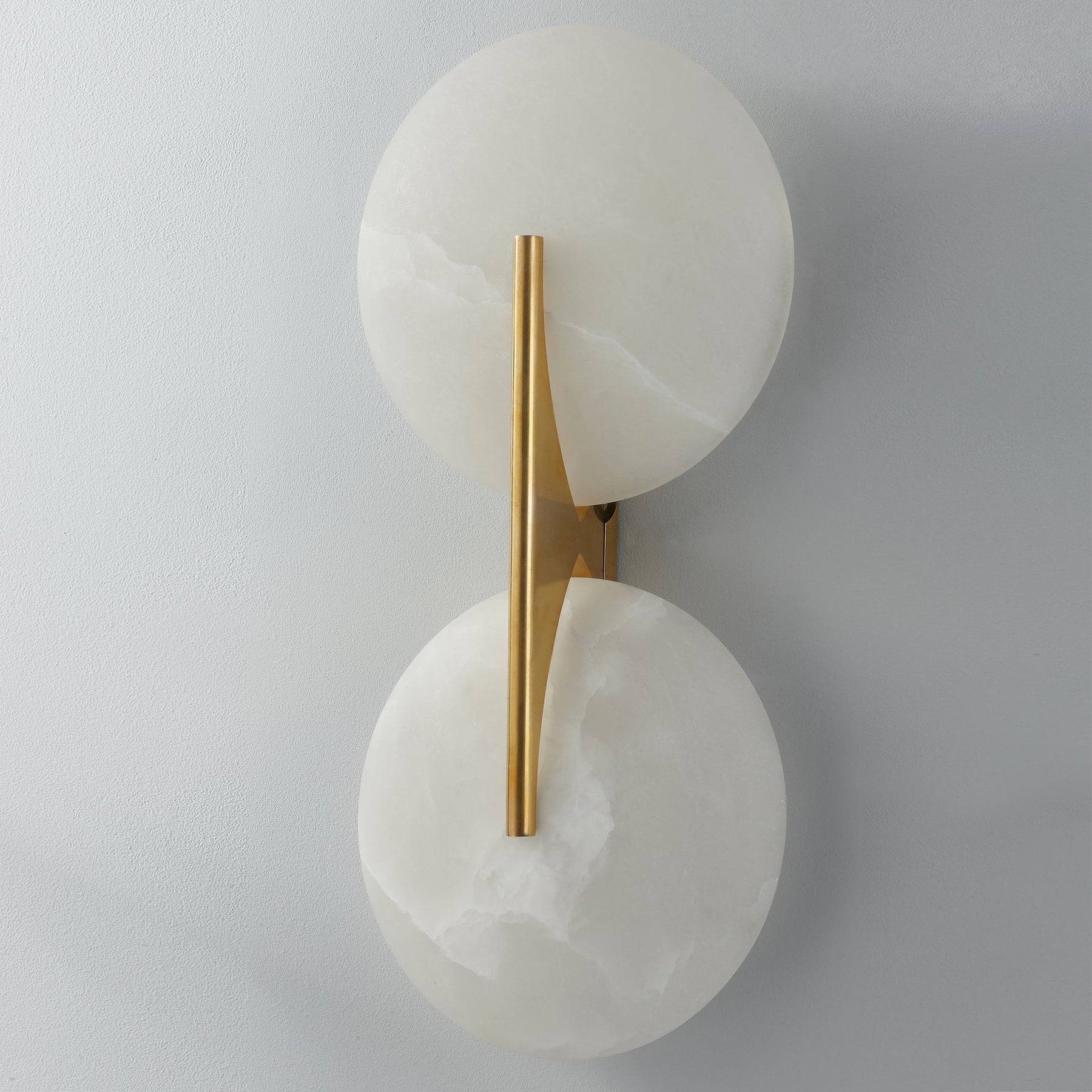 The Asteria Wall Sconce by Corbett Lighting is a stunning addition to any modern space, featuring a beautiful alabaster shade in white that elegantly diffuses light. With dimensions of 9.75 inches in width and 20.75 inches in height, this sconce has a sophisticated 4.00-inch extension and a top-to-center measurement of 4.75 inches. It is ideal for use with two integrated LED lamps, offering a total wattage of 25W and an impressive output of 1650 lumens at a color temperature of 3000K, achieving a high CRI of 90. Available in two striking finishes, Black Brass and Vintage Brass, this stylish sconce is also field serviceable and is designed for damp locations, making it versatile for various environments.