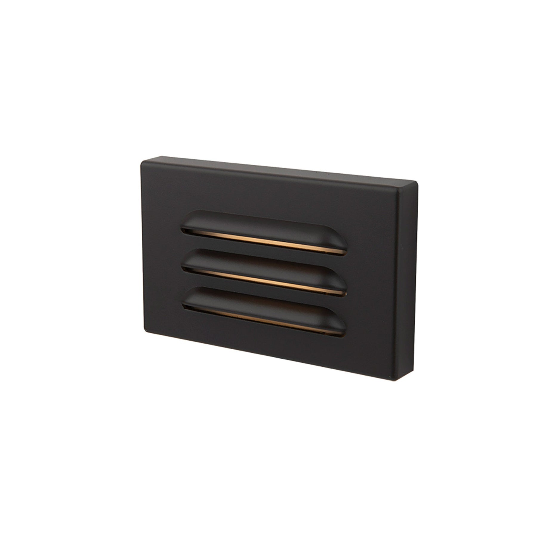 5in 12V LED Horizontal Louvered Surface Mounted Indoor or Outdoor Step Light and Wall Light 3000K in Bronze This slim low-profile step and wall light is designed to surface mount onto any application without the need for an electrical box like traditional step and wall lights, enabling the versatility to install the WAC Surface Mounted Step and Wall Light anywhere you would like. Available in a variety of finishes and color temperatures, this sleek and versatile step and wall light is sure to meet your expectations. UL and cUL listed for exterior locations with an IP66 rating to withstand rain and continuous streams of water. Constructed from a corrosion resistant aluminum alloy with a die-cast solid brass option for marine or coastal environments. Accepts an input voltage range of 9-15VAC and can tap into an existing landscape lighting power supply. If there is no existing power supply, this light will require a remote 12VAC transformer (EN-12100-RB2) sold separately to step down your 120VAC household voltage down to 12VAC. A 3ft lead wire is included for ease of installation. Constructed from a corrosion resistant aluminum alloy with a die-cast solid brass option for marine or coastal environments. A 3ft lead wire is included for ease of installation. Available in a variety of finishes and color temperatures, this sleek and versatile step and wall light is sure to meet your expectations. Also available in a standard 5in size (4501) and a wide 9in size (4901). Does not require an electrical/junction box for installation. Versatility to install the WAC Surface Mounted Step and Wall Light anywhere you would like. Wet location rated to IP66 standards for indoor and outdoor installations, No UV or heat radiation. Smooth and continuous ELV dimming to 10% with an Electronic Low Voltage dimmer. Accepts an input voltage range of 9-15VAC and can tap into an existing landscape lighting power supply. If there is no existing power supply, this light will require a remote 12VAC transformer (EN-12100-RB2) sold separately. Replaceable LED Module available in 2700K, and 3000K Color Temperatures, Power Consumption: 4W, Lumens: Up to 68, CRI: 90, 70,000 hours rated life. Standards: UL & cUL 1838 and IP66 Rated for Wet Locations (See Specification Sheet for complete details).