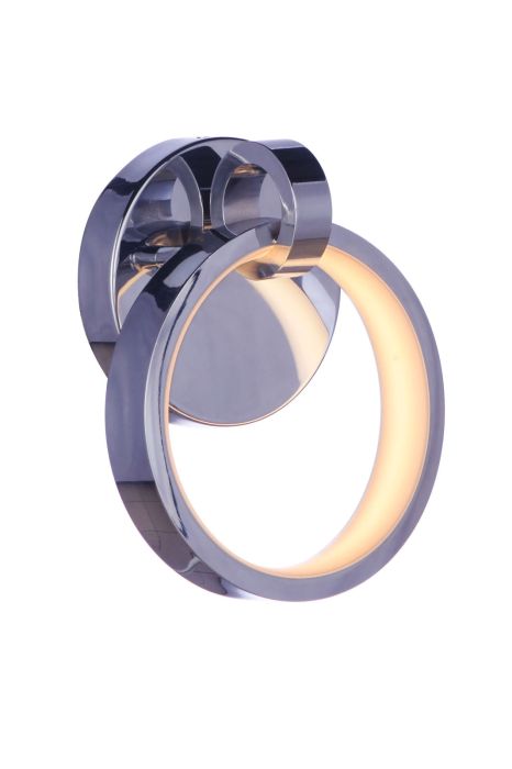 The Context LED Wall Sconce in polished chrome is a stunning addition to any space, offering both style and functionality. This sconce features an integrated 5 Watt LED light producing 180 lumens at a warm 3000K color temperature, and is fully dimmable for adjustable ambiance. Measuring 6.50 inches in width and 8 inches in height with a 3.54-inch extension, it is rated for damp locations, making it ideal for bathrooms or covered outdoor areas. The fixture comes with a 1-year warranty for the fixture and a 3-year warranty for the LED.