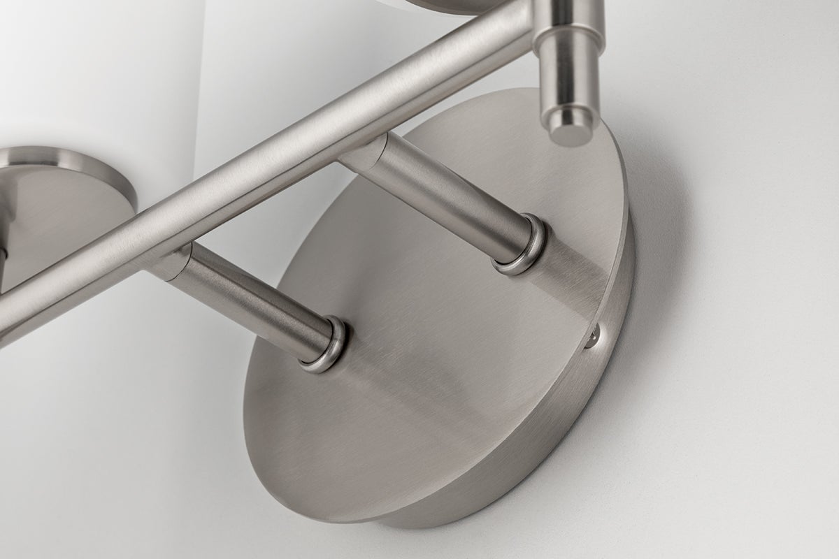 The Trinity Wall Sconce by Hudson Valley Lighting is a stunning blend of functionality and design, featuring a sophisticated Opal Matte glass shade that enhances any space. With a width of 13.75 inches and a height of 8.00 inches, this sconce provides ample lighting with two G9 LED bulbs (not included), offering a maximum wattage of 50W each. Its 4.75-inch extension and 5.50-inch height from the top to center make it ideal for various wall placements. Available in polished chrome and satin nickel finishes, this sconce is ETL Damp rated, making it perfect for use in bathrooms and other moisture-prone areas.