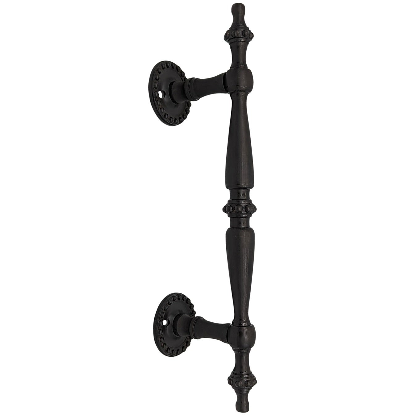 This Estate Handle has Solid Brass Construction. Comes With Mounting Hardware. Measures 9 3/4 Inches long (245 mm) by 1 3/4 Inches Wide (44 mm) with a projection of 2 1/2 inches. Solid Brass Casting & Weighs Approximately 1 Pound. Comes in a variety of finishes including Polished Brass, Antique Brass, Black Bronze, Polished Chrome, and Satin Nickel. The average lead time for this particular product is 4 to 6 Business Days.