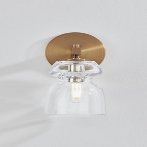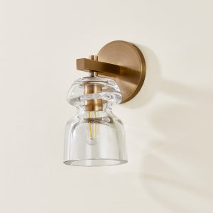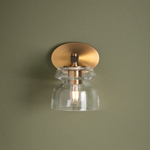 The Trey Wall Sconce by Troy Lighting is a stunning addition to any space, featuring a sophisticated Patina Brass or Polished Nickel finish option. This elegant fixture measures 4.75 inches in width and 9.25 inches in height, with a 5.50-inch extension from the wall. It requires one E12 candelabra base bulb (not included) with a maximum wattage of 8.00W. The shade, crafted from glass, enhances its aesthetic while being UL Damp rated, making it suitable for use in humid areas such as bathrooms.