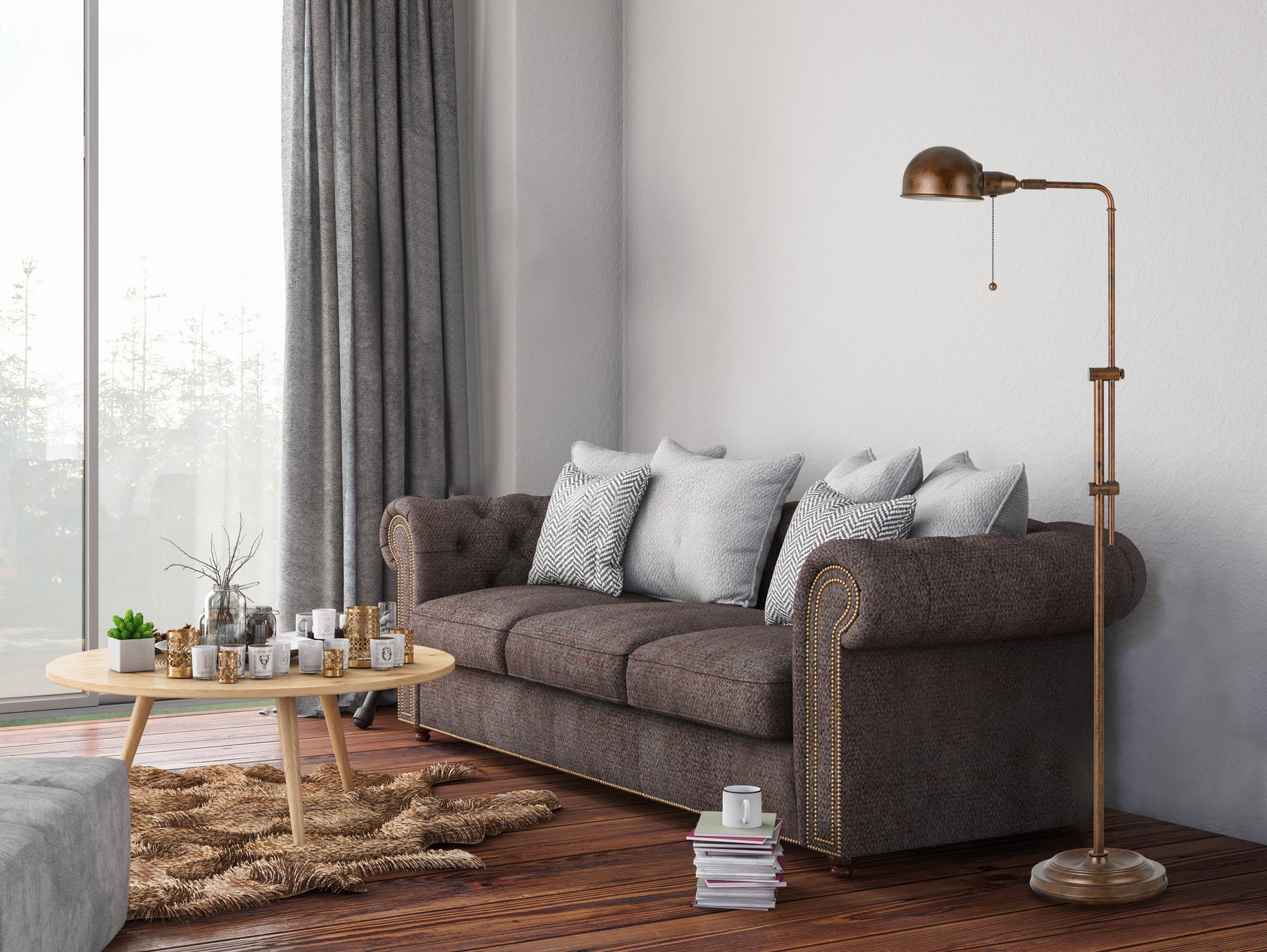 The 60W Croby Pharmacy Floor Lamp in Rust is a perfect blend of style and functionality, featuring a durable metal construction that ensures longevity. This floor lamp includes an adjustable height feature, allowing you to customize its position to suit your needs. It also has a convenient pull chain switch for easy operation and an adjustable head to direct light where it's needed most. With a 6-foot cord, it provides ample reach, and it ships in one carton for efficient delivery. Standing at 58 inches tall, this metal floor lamp is an excellent choice for any living space.
