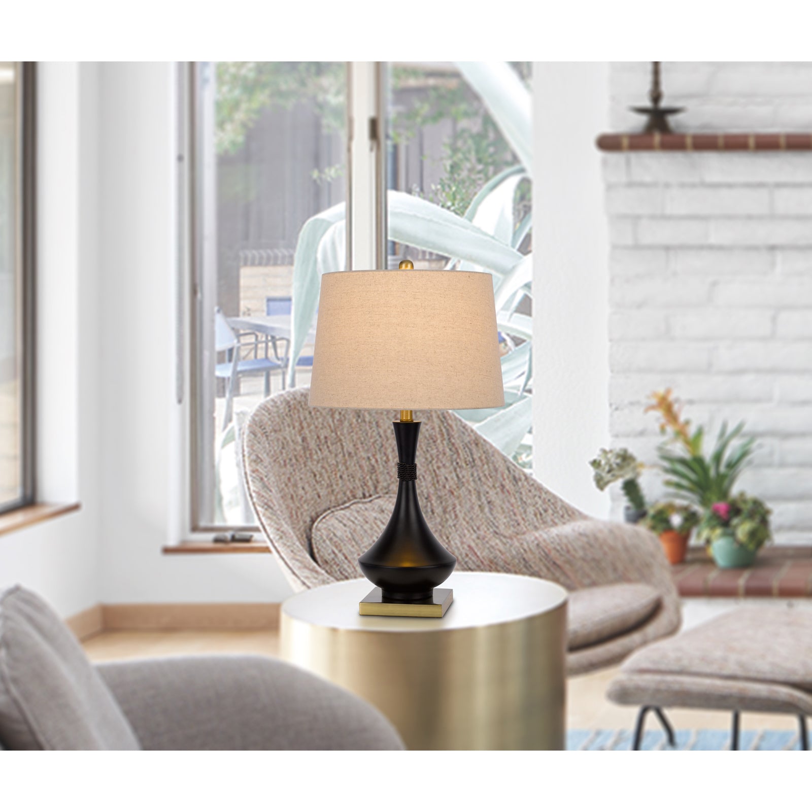 The BO-3072TB-2 Hilo Metal Table Lamp set is a perfect blend of style and functionality, enhancing your decor with elegance. This pair of lamps features durable metal construction, stylish black finish, and hardback linen shades, making them a sophisticated addition to any room. Each lamp has a wattage of 100W and utilizes an E26 bulb base for optimal brightness. With a compact package dimension of 18.80 inches in length, 16.50 inches in width, and 23.50 inches in height, they ship conveniently in one carton and require little to no assembly. Backed by a one-year warranty, this set is designed to provide both aesthetic appeal and reliable performance.