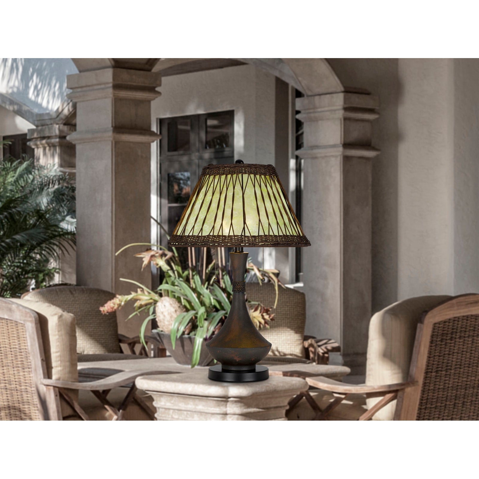 The Mateo Table Lamp (Product No. BO-3103TB) combines durability and style with its robust metal and resin construction. It features two pull chain switches for convenient on/off control and comes with a beautiful rattan shade that adds a tropical flair to any room. The painted green shade enhances its aesthetic, while the wicker decorative trim adds a touch of charm. This lamp requires two E26 base bulbs, each with a wattage of 60W, and ships conveniently in one carton. Ideal for everyday use, it requires assembly and comes with a one-year warranty, ensuring quality craftsmanship and material.