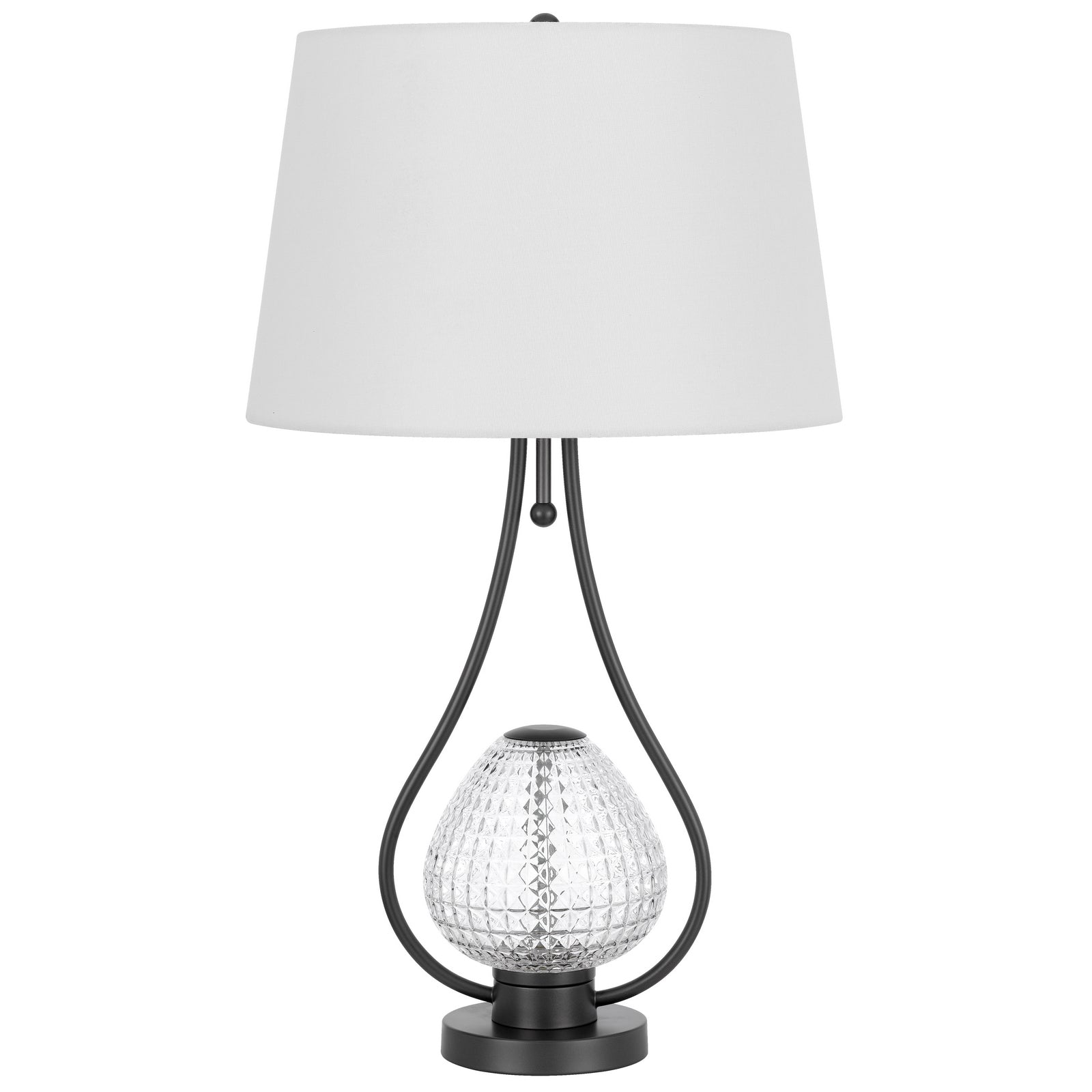 The Forssa 100W 3-way table lamp (Product No. BO-3136TB) is an exquisite addition to your living space, featuring a stunning teardrop style design with a clear diamond pattern. This lamp is constructed with durable glass and metal, ensuring longevity and stability with its weighted base. It operates via a rotary switch located on the socket, allowing for easy adjustment of light levels. Additionally, this lamp includes a functional 2W LED night light for added convenience. The hardback fabric shade complements its elegant design, making it suitable for various settings. The lamp measures 18.30 inches in width, 18.30 inches in length, and 22.80 inches in height, accommodating one E26 base bulb with a maximum wattage of 100W. With a minor assembly required, it arrives packaged securely in one carton and comes with a one-year warranty for peace of mind.