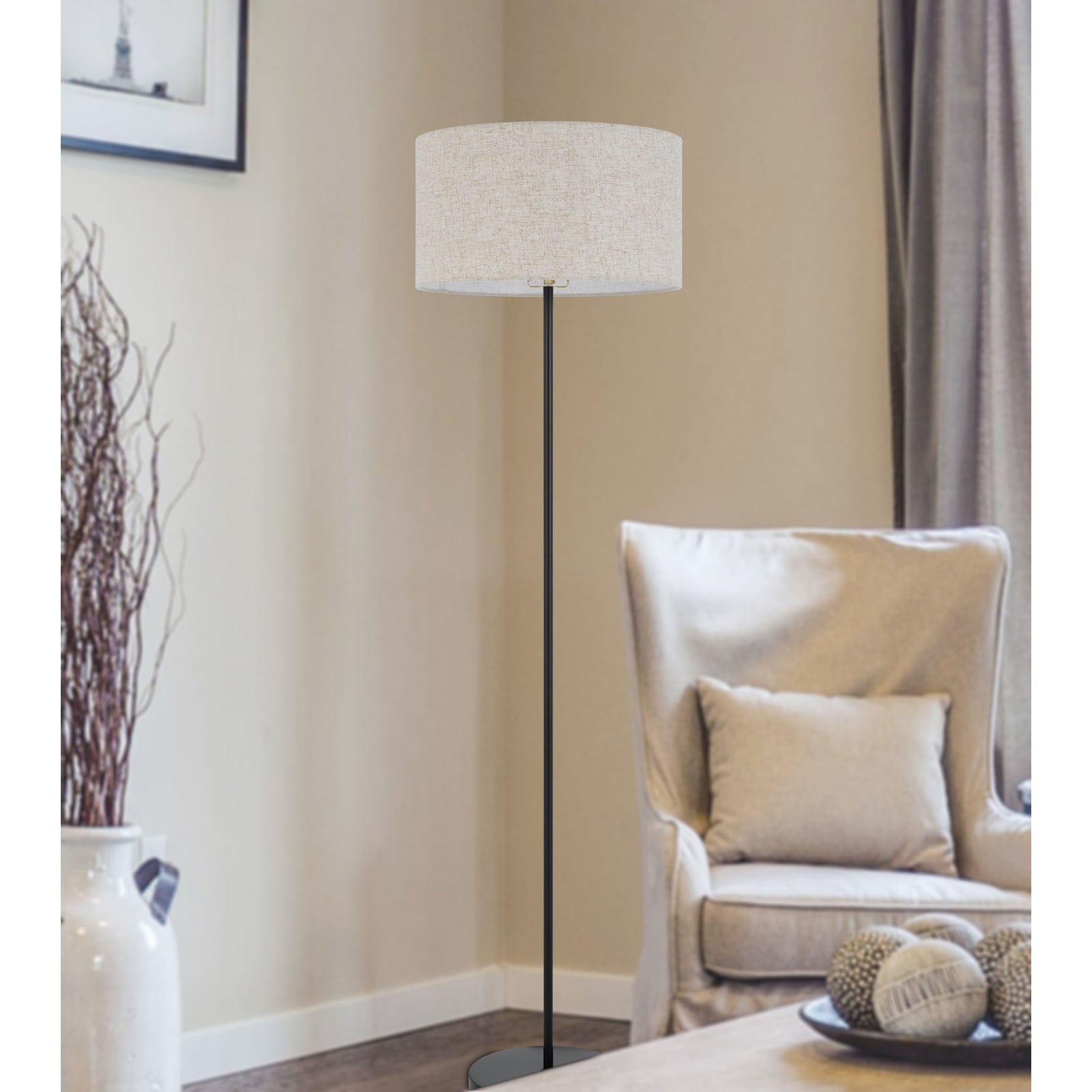 The BO-3174FL-BK-BU Cromwell 150W 3-way metal floor lamp is a stylish and functional addition to any living space. With its durable metal construction and elegant black painted finish, this lamp features a chic burlap drum shade that complements the dark frame beautifully. The design includes a convenient rotary switch on the socket and a three-way switch for adjustable lighting. Delivered in one carton with little to no assembly required, this lamp is perfect for smaller areas and offers a contemporary look that enhances any decor.