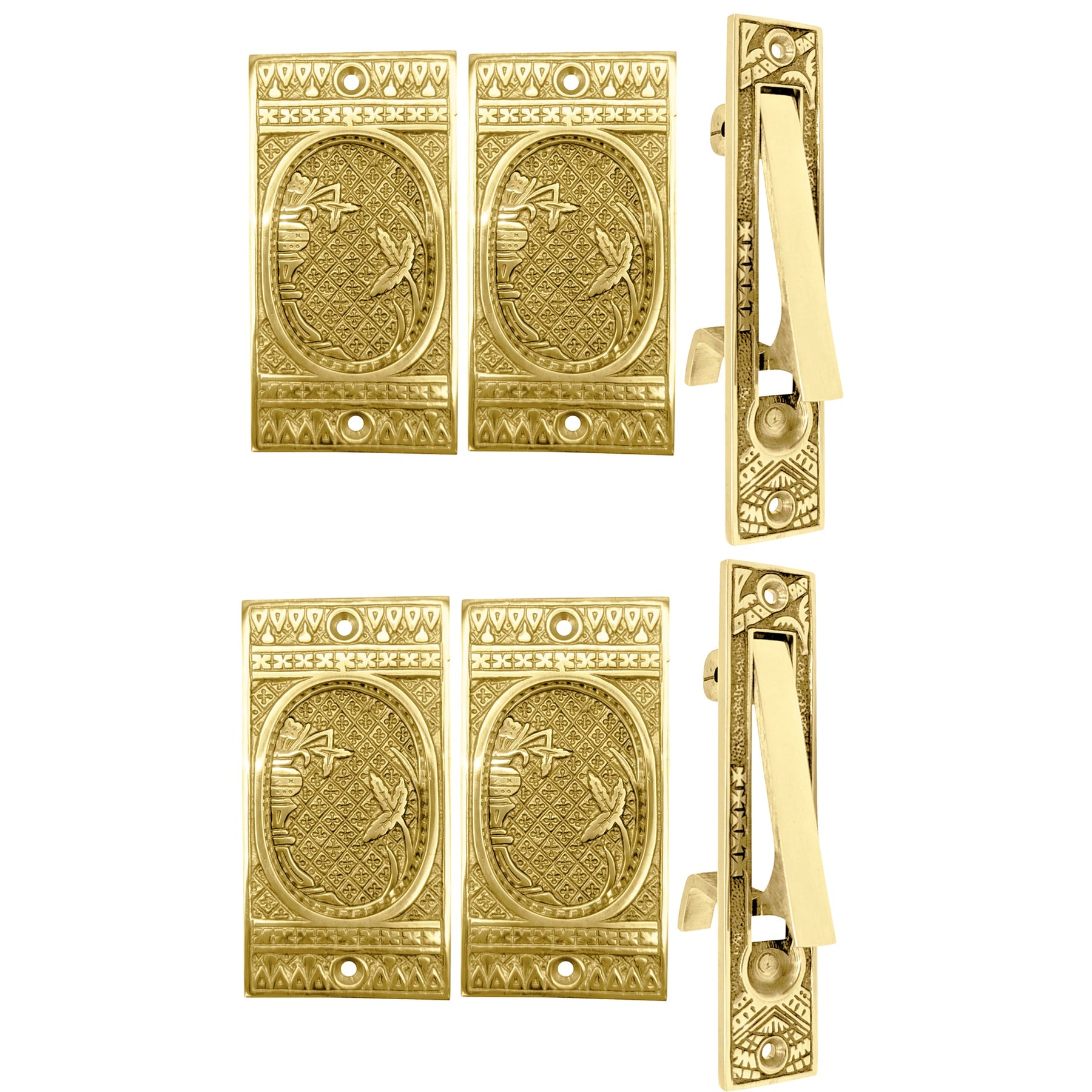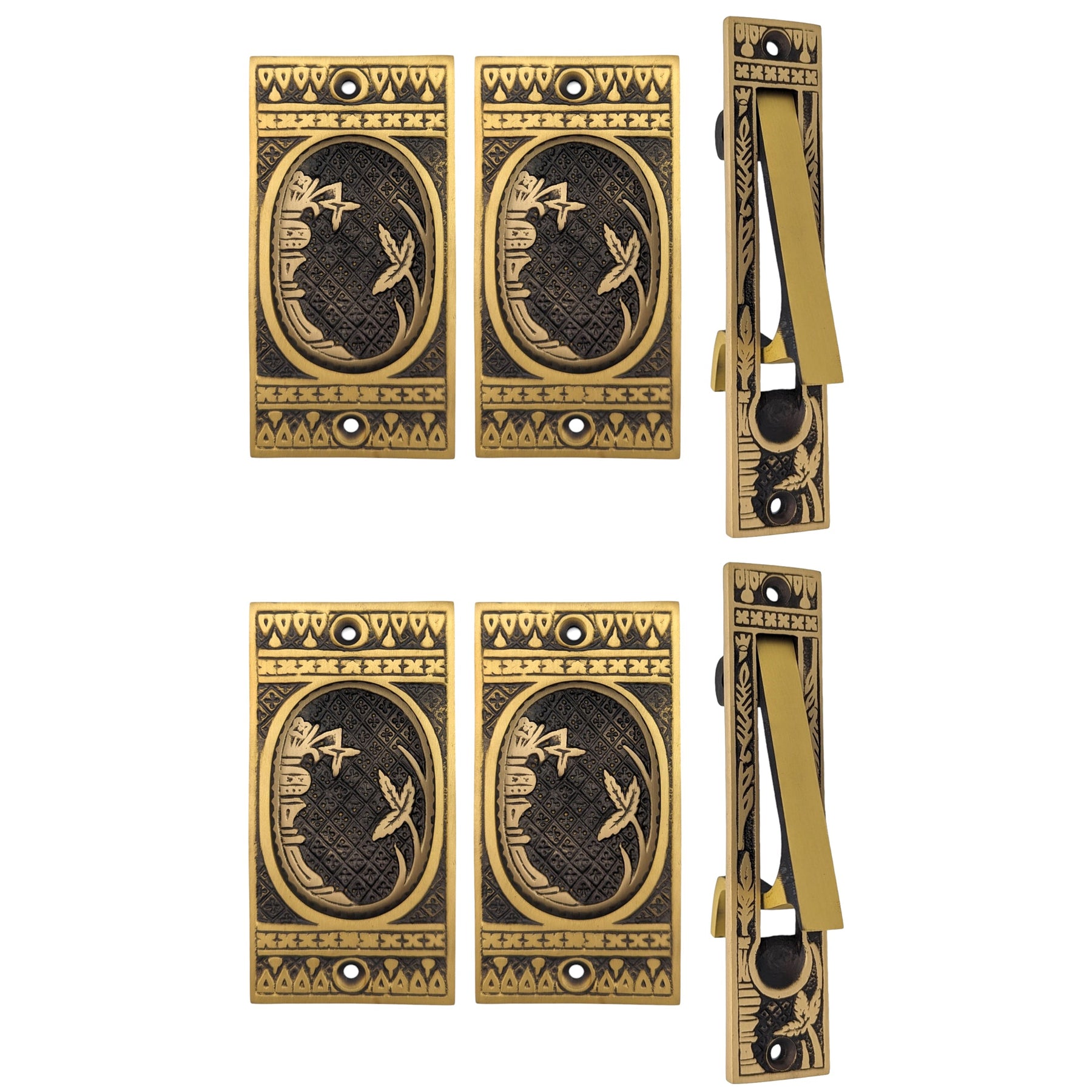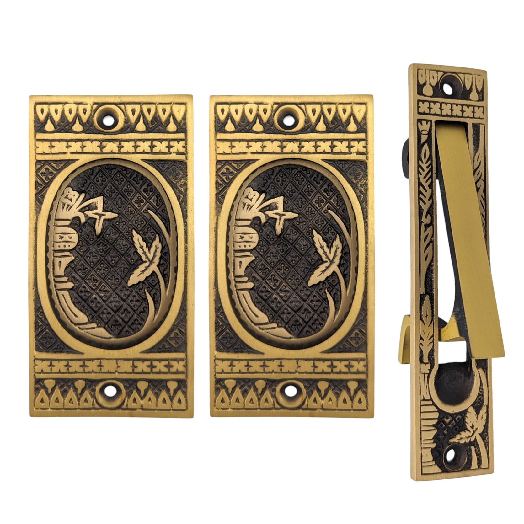 Revitalize your interior with our Broken Leaf Pattern Pocket Door Set, a design rooted in history and elegance. Originally patented in 1887 by the renowned Lockwood Manufacturing Company, this flush pull pays homage to the Victorian era's intricate craftsmanship. The solid brass construction not only ensures durability but also adds a touch of timeless sophistication to your pocket door sets.