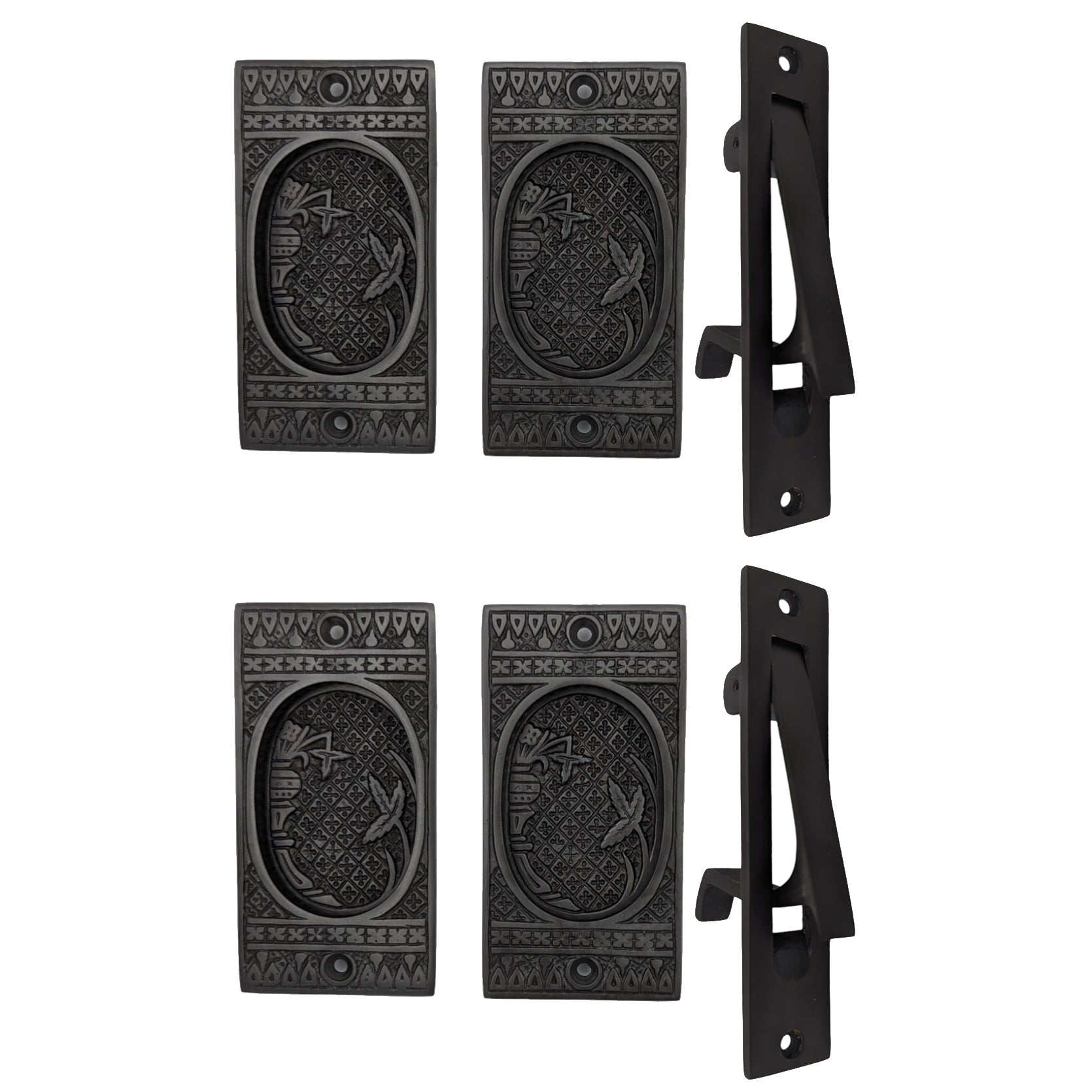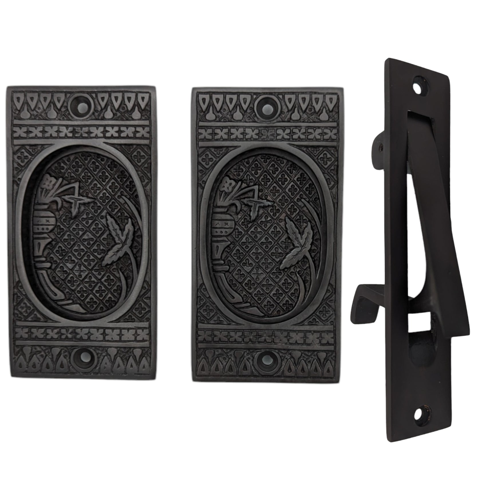 COPPER MOUNTAIN HARDWARE Broken Leaf Pattern Pocket Door Set in Several Finishes