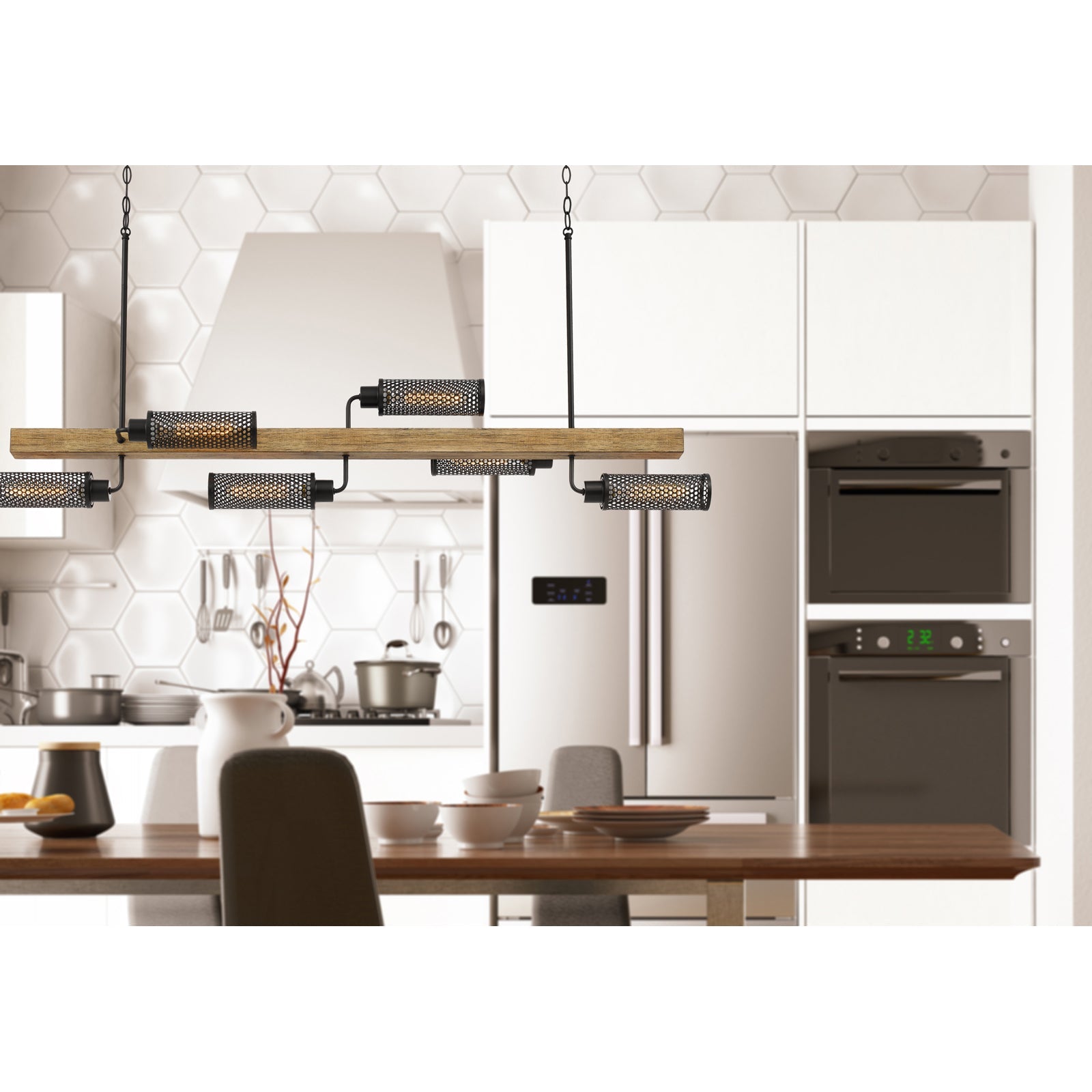 60W X 6 LENOX PINE WOOD ISLAND CHANDELIER WITH METAL MESH SHADES