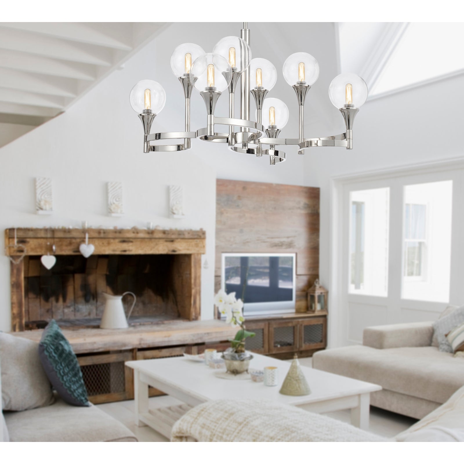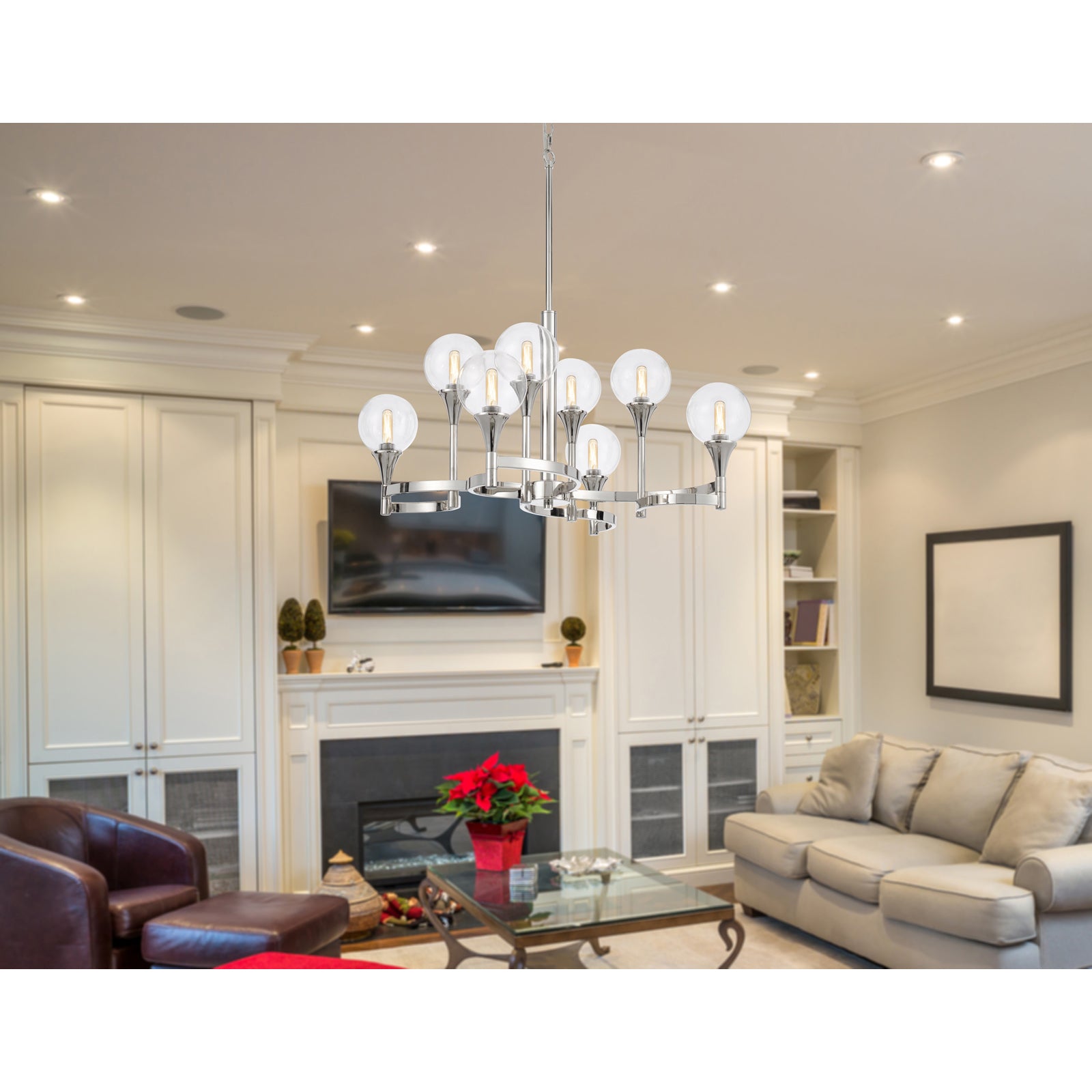 15W X 8 MILBANK METAL CHANDELIER AND CLEAR ROUND GLASS SHADES