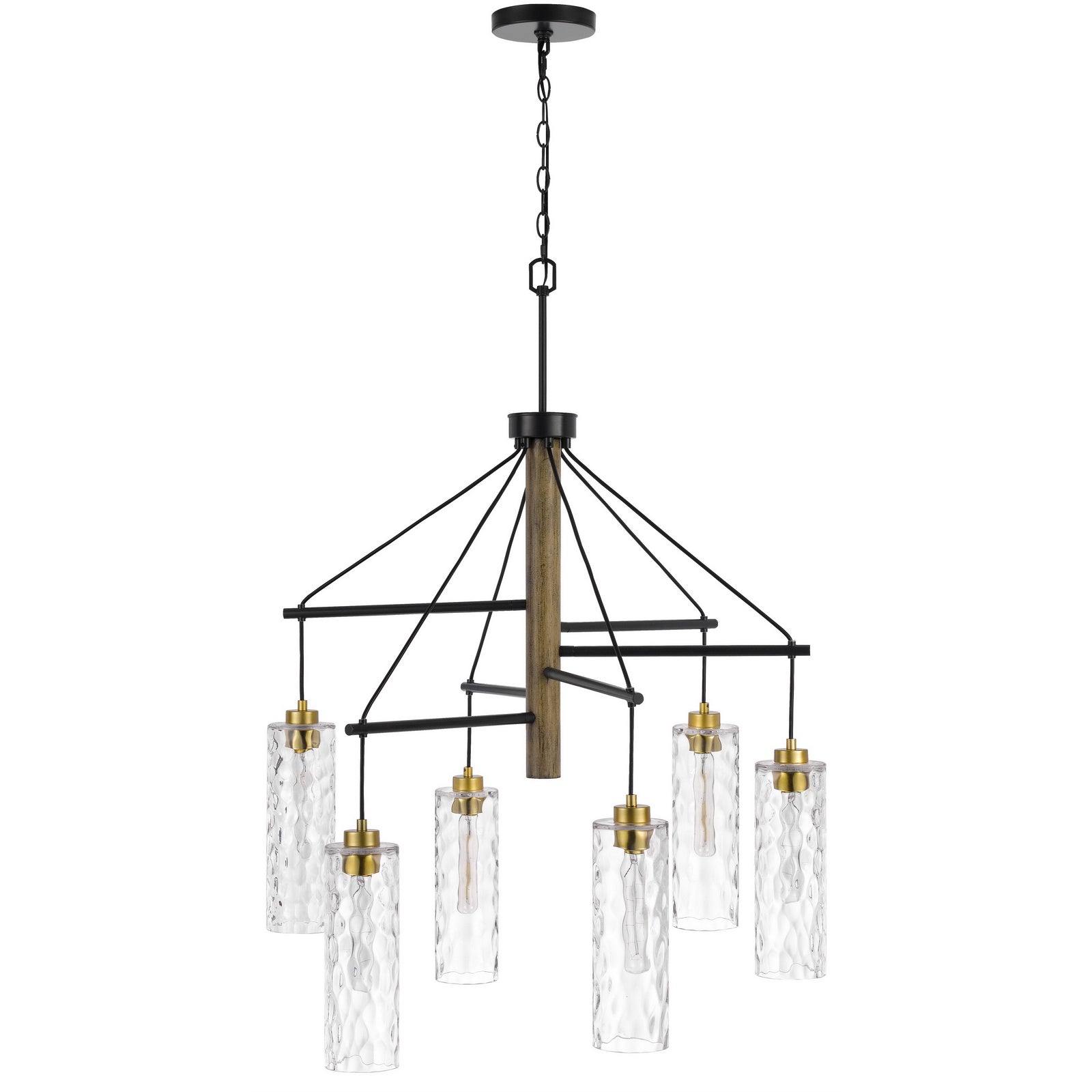 The FX-3788-6 Williston chandelier is a stunning and functional lighting fixture that enhances any home decor. With its robust durable metal and wood construction, it features a total of six clear textured glass shades, providing an inviting glow. The chandelier offers a maximum wattage of 60W per bulb, uses an E26 bulb base, and requires assembly. This modern piece comes with a six-foot adjustable chain and a canopy for easy installation and can be shipped in one carton. Additionally, it includes a one-year warranty against defects, allowing you to refresh your space with confidence.