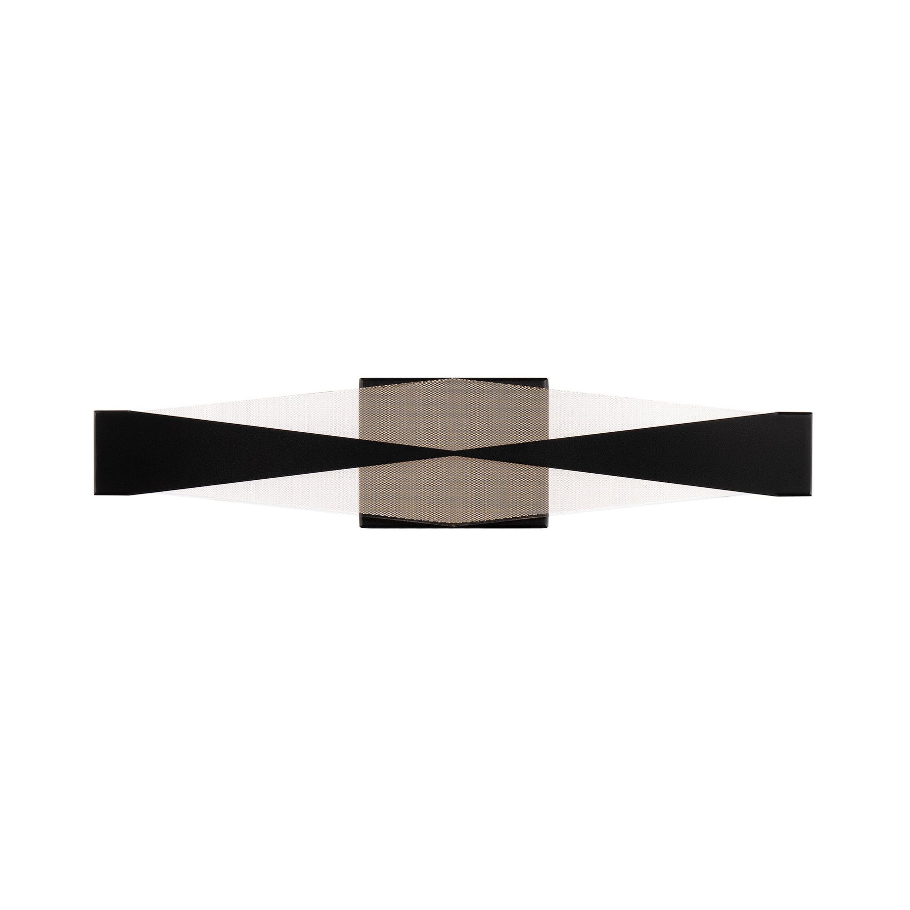Enigmatic 24in LED Bath Vanity & Wall Light 2700-3000-3500K in Black. Uniting clean geometric lines. Even, edge-lit LED illumination is dispersed through an elongated diamond shape. Features an aluminum body, side lit with laser-dot light guide material for a unique illumination NEW Tri-CCT technology features a switch inside the canopy that is accessible during installation and allows you to toggle color temperatures between 2700K Warm - 3000K Warm White - 3500 White to find and set the perfect color temperature for your space. This fixture is factory pre-set to a default 3000K setting for consistency and can be modified in the field during installation. Universal Input Voltage Driver (120V-240V-277V) concealed within the canopy. Custom CCT options available by special order. Smooth and continuous dimming with electronic low voltage ELV or TRIAC dimmer options. High Powered Replaceable LED Module CRI: 90, Rated Hours: 50000, Color Temp Adjustability: 2700K-3000K-3500K Standards: ETL/cETL and UL 1598 listed with IP44 rating for Damp Locations. CEC Title 24 compliant.