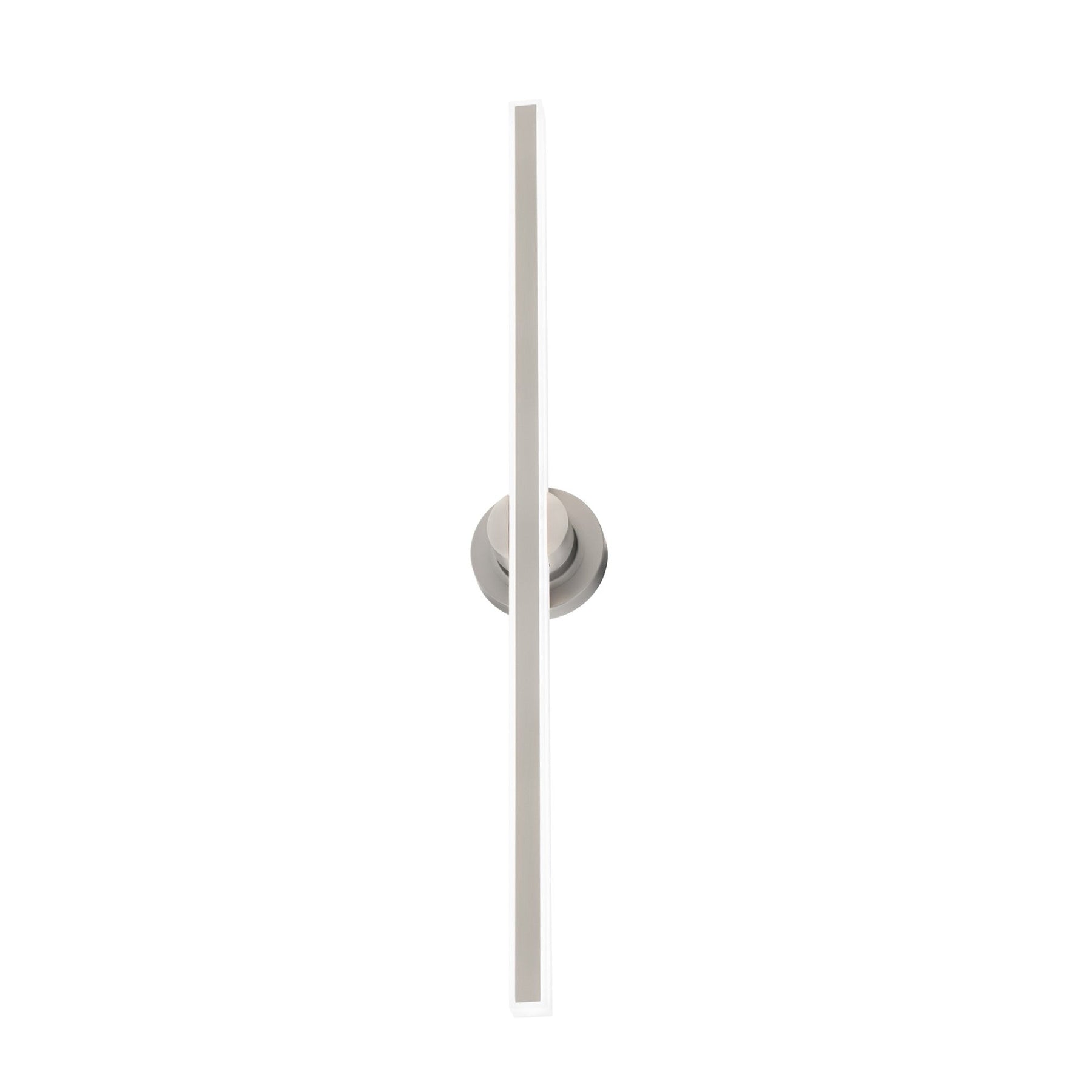 Bastone 36in LED Bath Vanity & Wall Light 4000K in Brushed Nickel. A simple rectangle radiates from LED illumination. This seamless design presents a sharp visual style. Featuring a die cast aluminum body with frosted acrylic diffuser ADA Compliant 120V AC LED Technology - no driver or transformer required. Easily fits on a pancake junction box. 277V or 240V options available by special order. Smooth and continuous dimming with an electronic low voltage (ELV) or TRIAC dimmer. High Powered Replaceable LED with CRI: 90, Rated Hours: 50,000, Color Temp: 2700K-3000K-3500K-4000K Adjustable Standards: ETL & cETL UL 1598 listed for Damp Locations, ADA Compliant