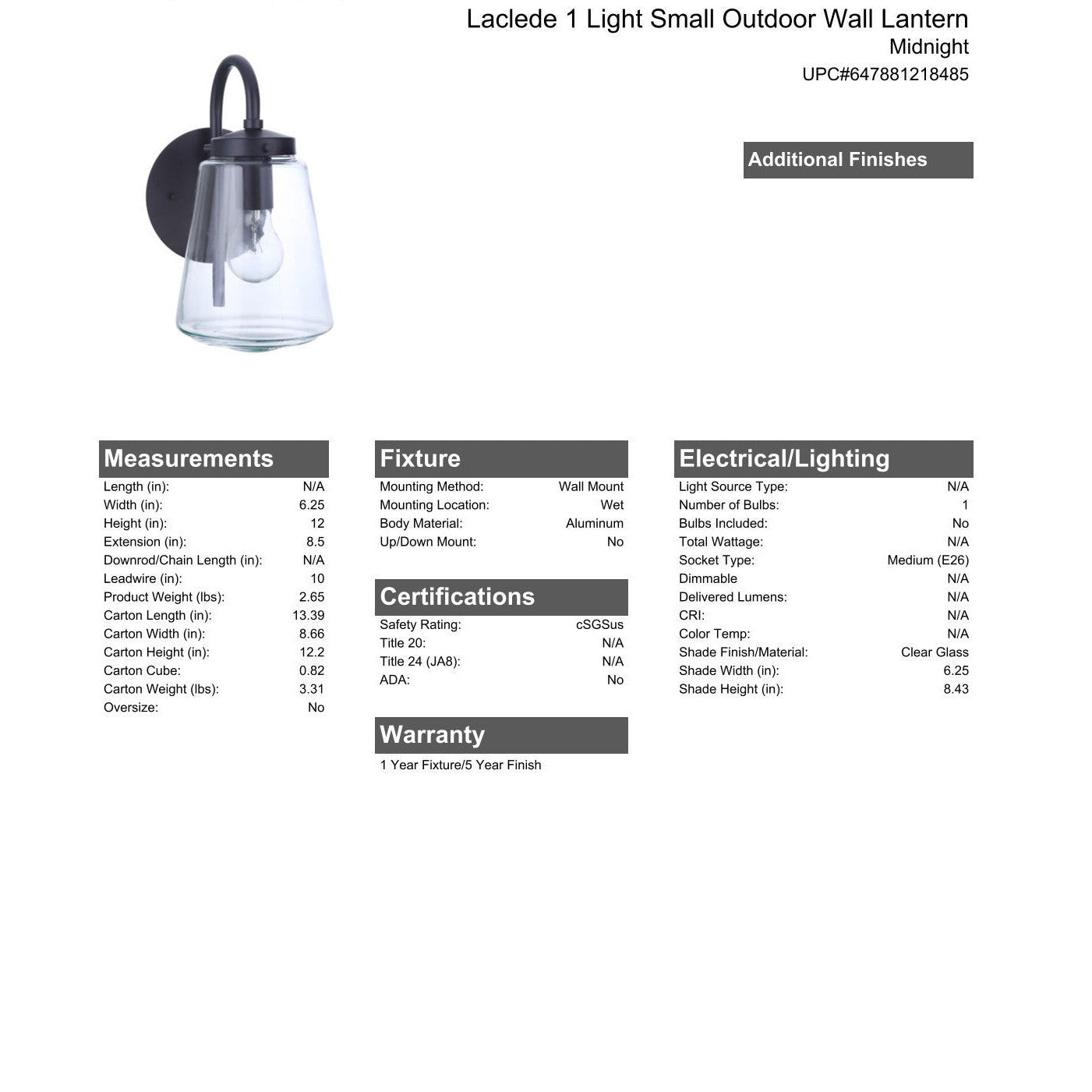 Laclede 1 Light Small Outdoor Wall Lantern in Midnight