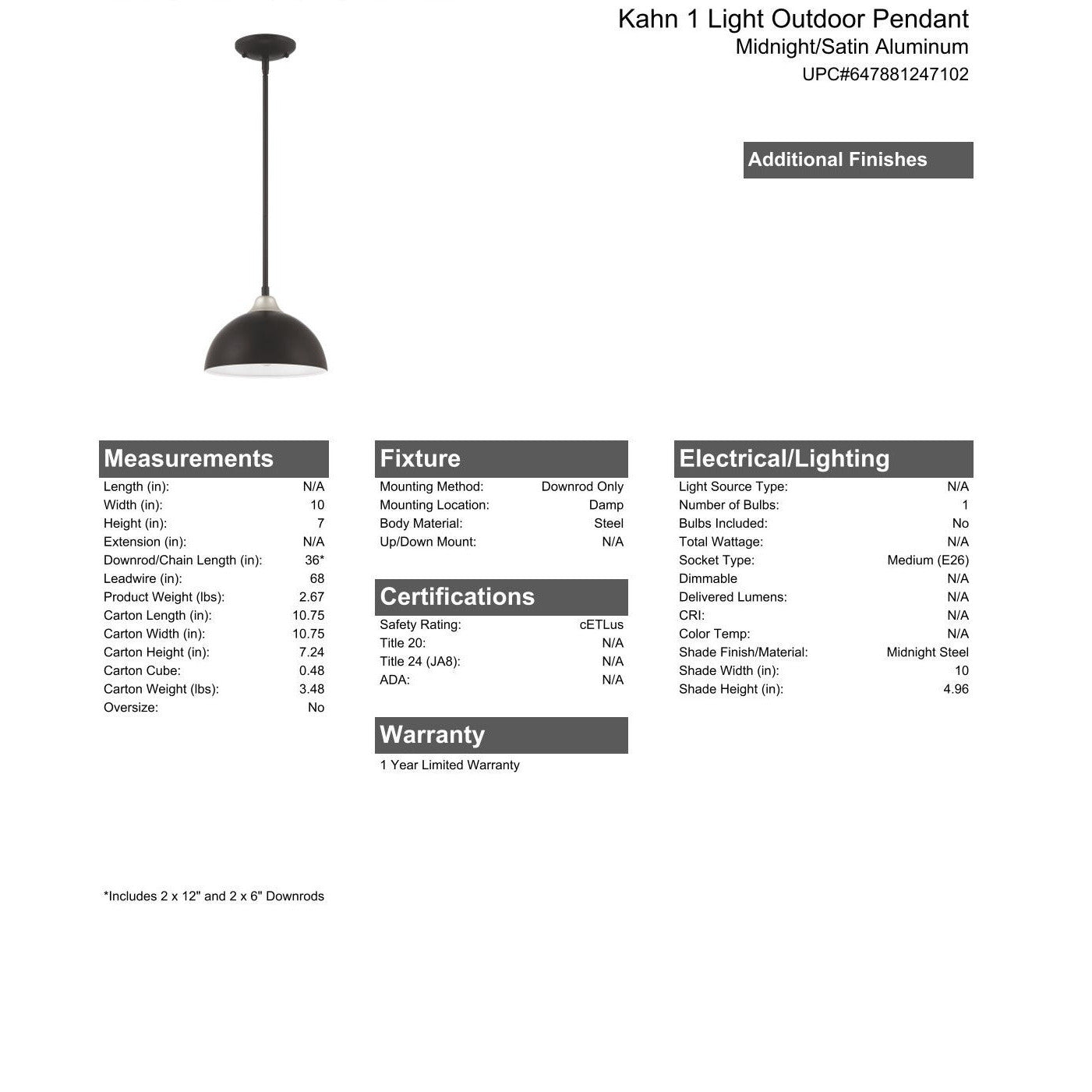 With elements of contemporary and mid-century modern architecture, the indoor/outdoor Kahn Lighting Collection features gorgeous midnight curves accented by the contrasting white interior and satin aluminum accents. Offering damp rated rod hung pendants in two sizes and a three light chandelier as well as two sizes of wet rated indoor/outdoor wall lanterns, the Kahn collection was created to be at home in any setting.