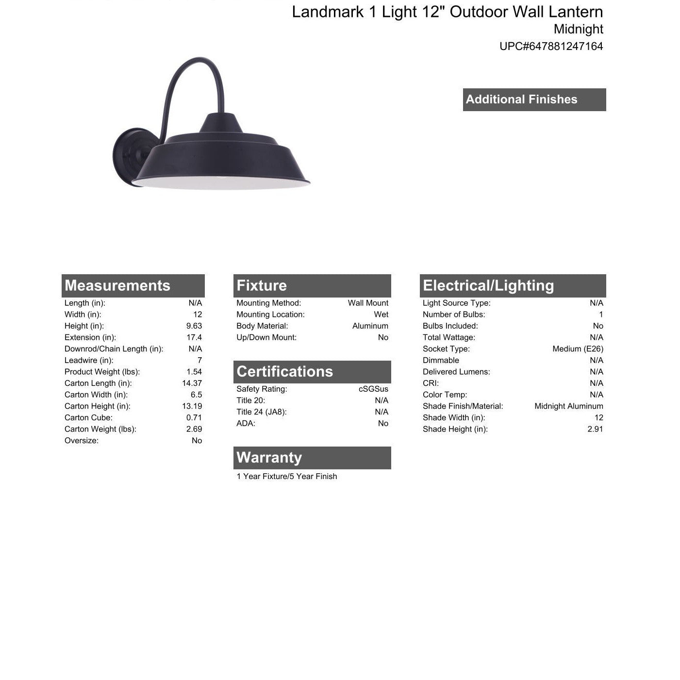 Landmark 1 Light 12" Outdoor Wall Lantern in Midnight