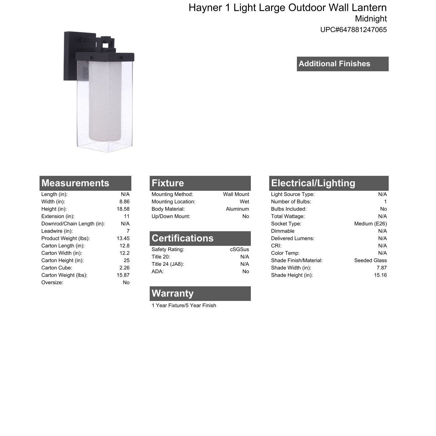 Hayner 1 Light Large Outdoor Wall Lantern in Midnight