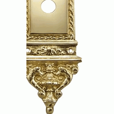 Solid Brass Ornate Rosette Plate (Polished Brass Finish) - this beautiful rosette plate measures 10 inches tall and 2 7/8 inches wide. It is available in several finishes including Polished Brass, Antique Brass, Polished Chrome, and Black Bronze. Comes complete with the mounting hardware.