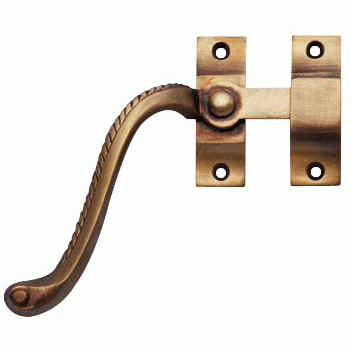 - Casement Window Fastener Georgian Roped Pattern, Left Hinge (Antique Brass Finish)