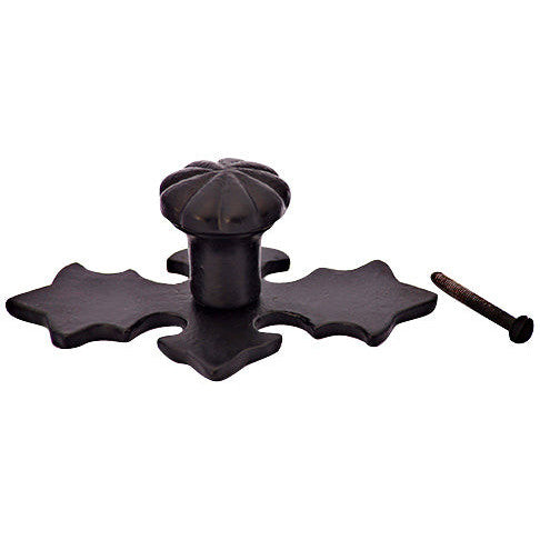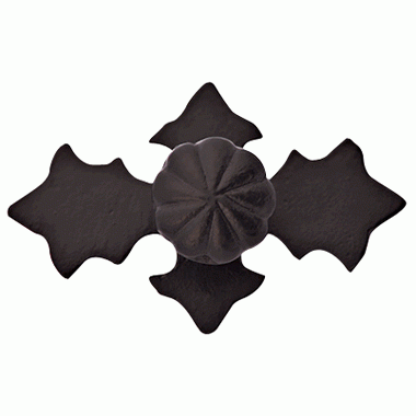 4 1/8 Inch Wide Solid Iron Cross Pattern Knob (Matte Black Finish) - backplate measures 4 1/8 inch wide by 2 3/4 inch tall with a projection of approximately 1 1/2 inch. Knob measures 1 3/8 in diameter. Available in several different finishes. Other finishes available upon request. Comes complete with mounting hardware.