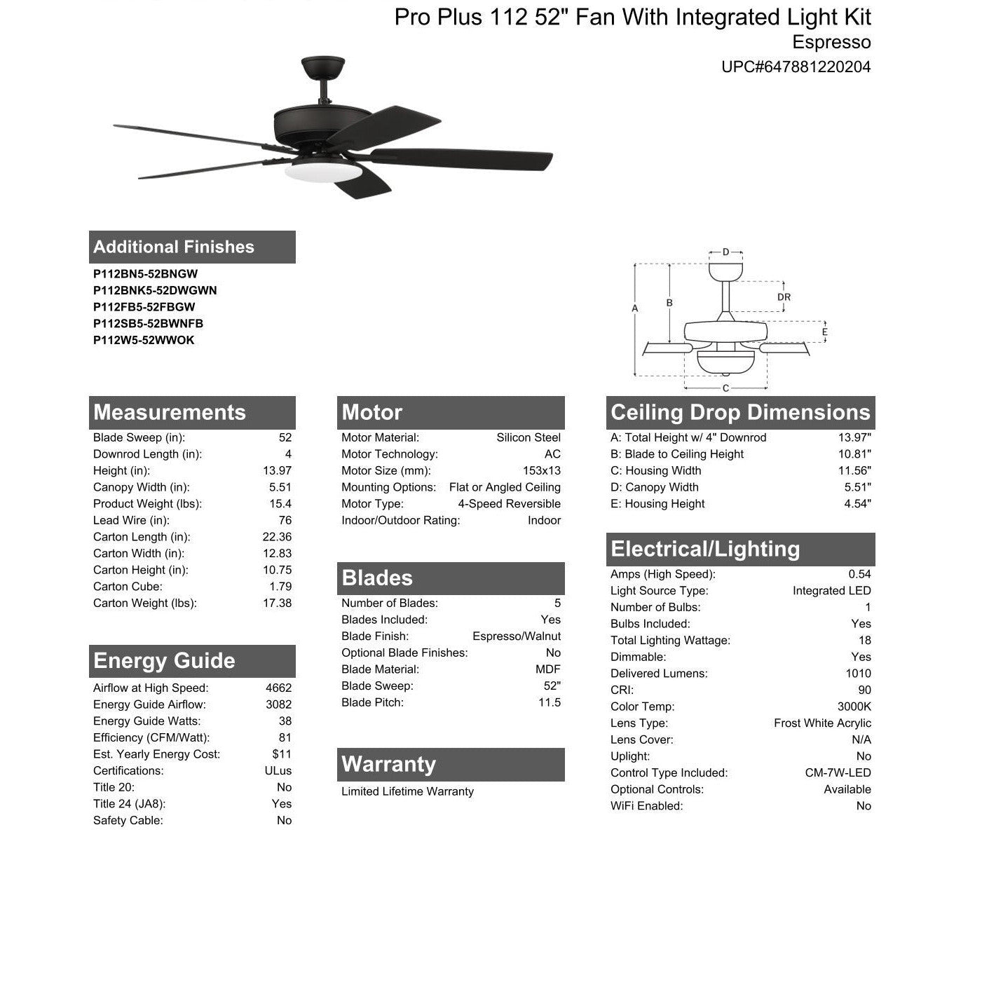 52" Pro Plus 112 in Espresso w/ Espresso/Walnut Blades