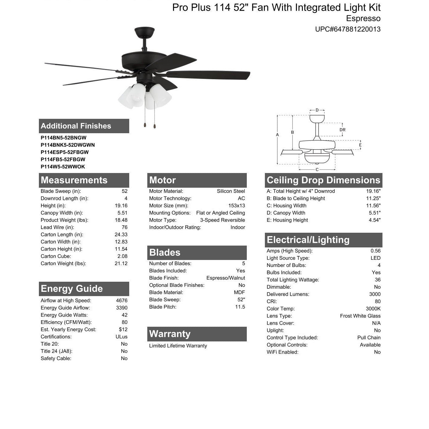 52" Pro Plus 114 in Espresso w/ Espresso/Walnut Blades