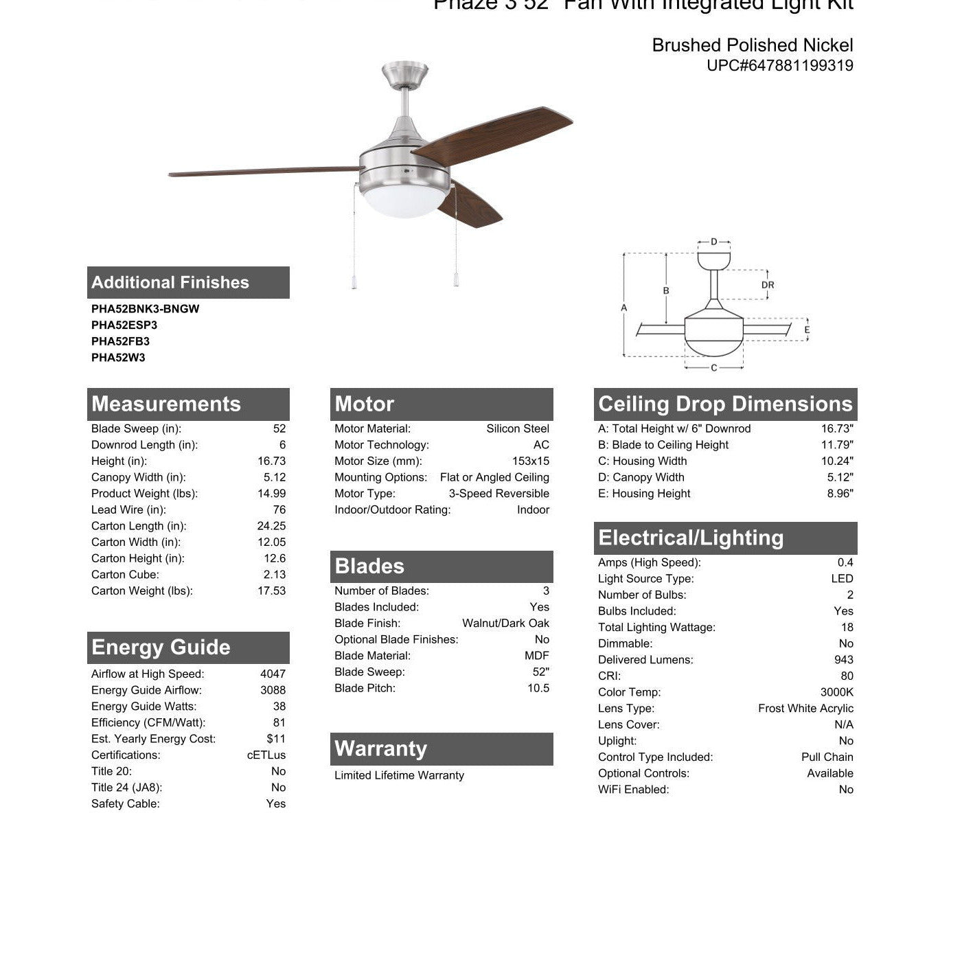 Modern and minimalist, the Phaze 3 52" features a sleek tri-blade design powered by a 3-speed, reversible motor, integrated lighting with non-dimmable LED bulbs included.