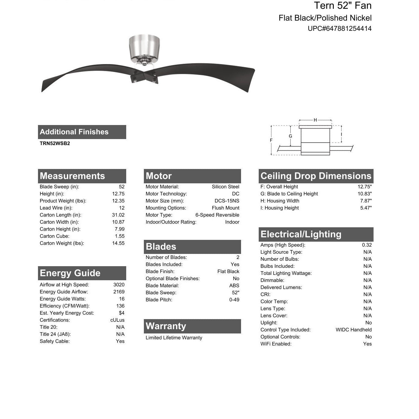 52" Tern in Flat Black/Polished Nickel w/ Flat Black Blades