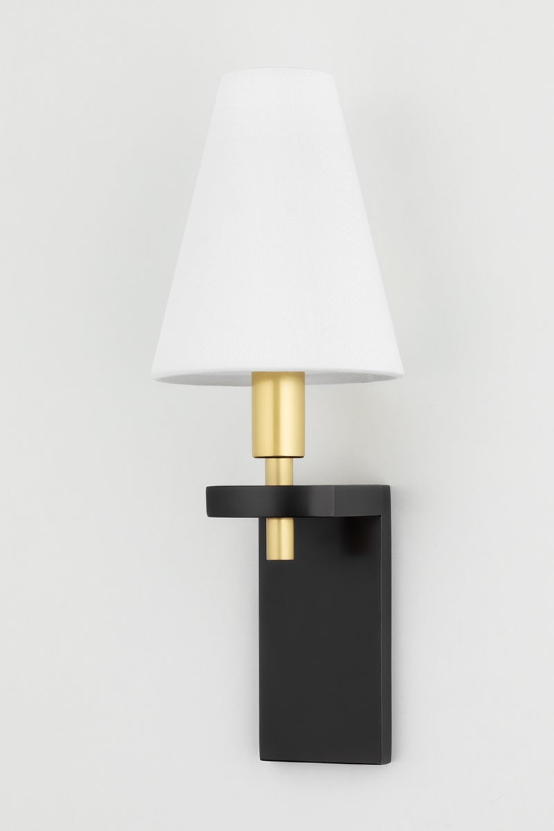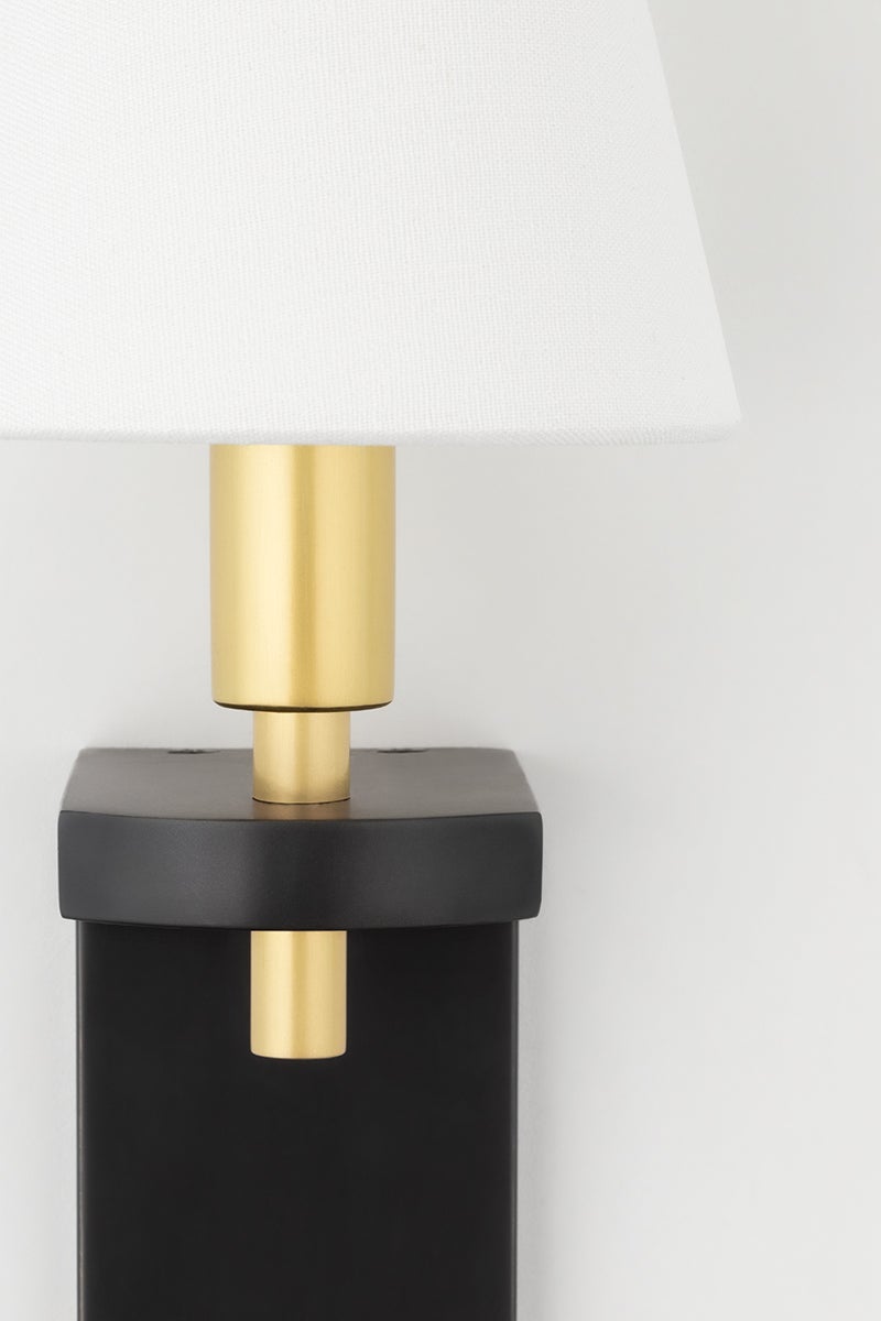 The Dooley Wall Sconce by Hudson Valley Lighting features a sophisticated design, perfect for enhancing any decor. With a width of 4.50 inches and a height of 12.75 inches, this sconce includes a beautiful white linen shade that emits soft, inviting light. It is compatible with one E12 candelabra base bulb (40W max, not included) and has an extension of 4.75 inches. The sconce is UL Damp rated, making it ideal for humid environments, and is available in two stunning finish options: Aged Old Bronze and Polished Nickel.