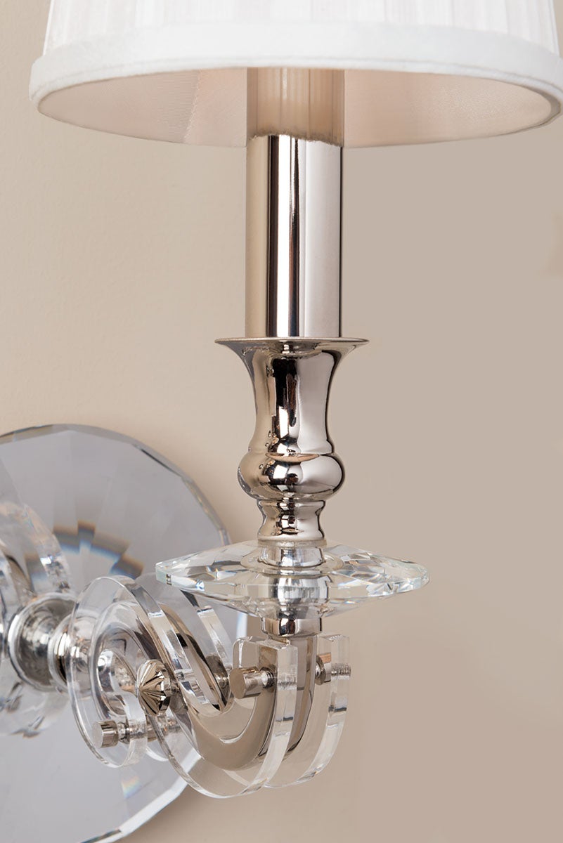 The Lapeer Wall Sconce by Hudson Valley Lighting offers a blend of elegance and functionality with its off-white faux silk shade. This fixture measures 5.50 inches in diameter and stands 14.00 inches tall, extending 8.50 inches from the wall, making it a perfect choice for various settings. It accommodates a single E12 candelabra base bulb (not included) with a maximum wattage of 60W, ensuring a warm and inviting glow. Available in two stunning finish options—Aged Brass and Polished Nickel—this sconce is UL Damp rated, making it suitable for use in damp areas.