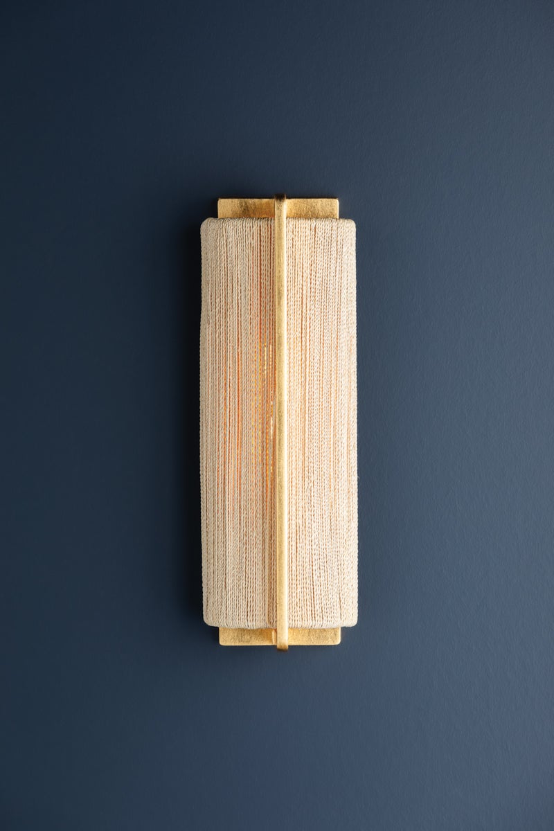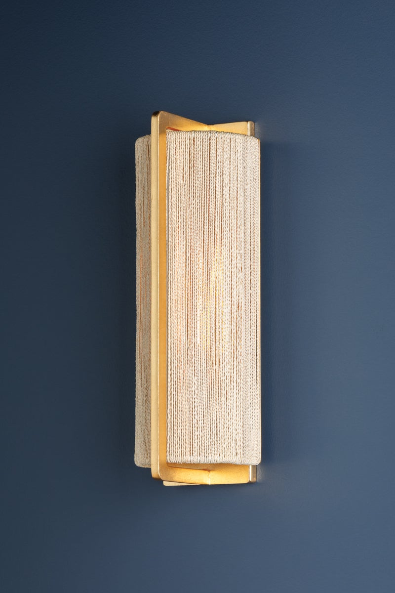 The QUEBEC Wall Sconce by Hudson Valley Lighting combines elegance with functionality, making it a perfect addition to both modern and traditional spaces. It features a stunning Abaca shade that beautifully diffuses light, and requires one E26 medium base bulb with a maximum wattage of 15W (not included). The sconce measures 5.75 inches in width, 16.25 inches in height, and extends 5 inches from the wall, making it an ideal choice for both narrow and spacious areas. With a top-to-center measurement of 8 inches, this sconce is UL Damp rated, suitable for environments where moisture may be present, and is available in a luxurious Gold Leaf finish.
