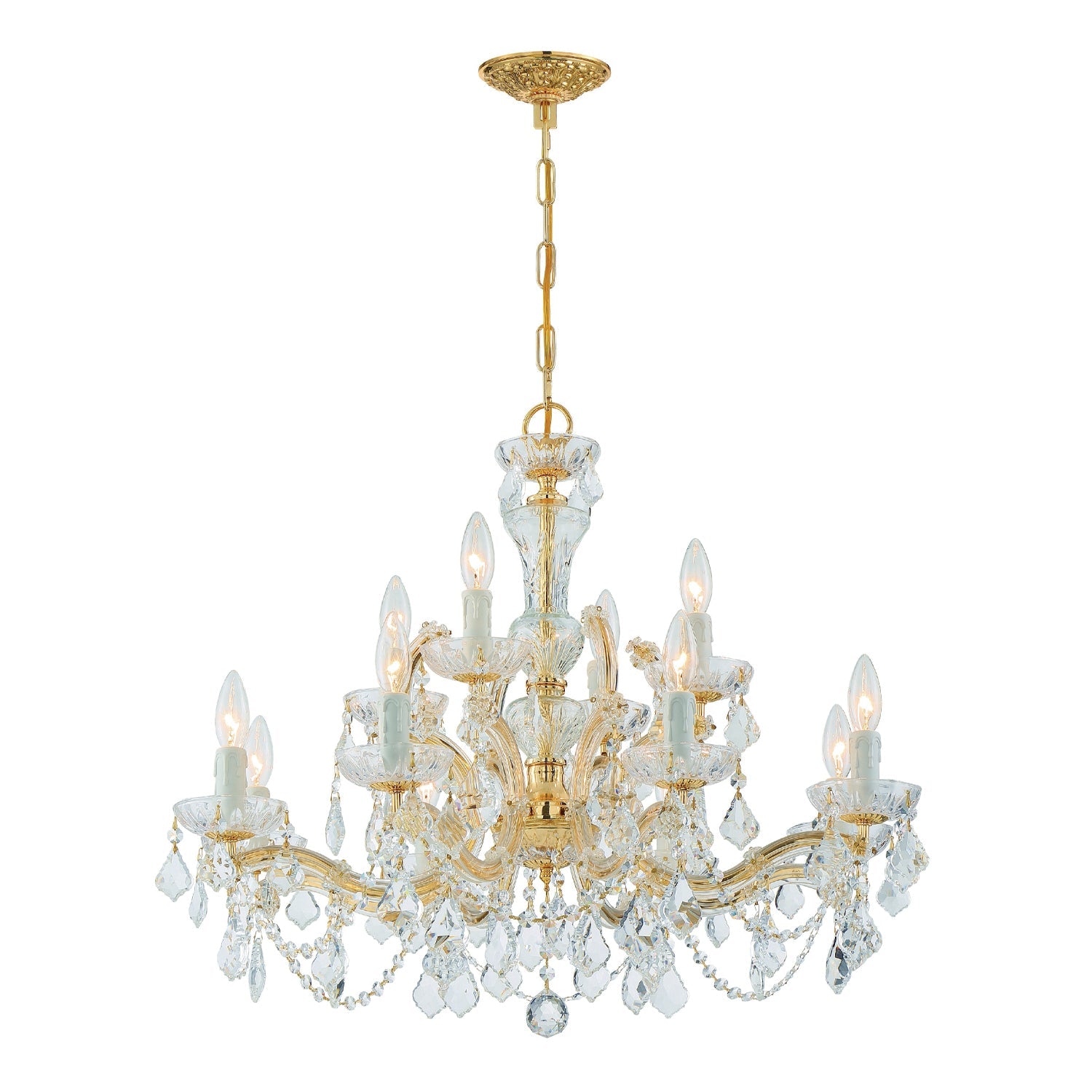 Draped in an abundance of crystal, the Maria Theresa collection is the epitome of high style. The fixture is stunning with glass arm frame decked with strands of faceted cut crystal. The fixture showcase opulence and decadence and is the perfect traditional accent to any space. Whether in a living room, or even closet or hallway, this fixture bring a luxurious addition to any decor.