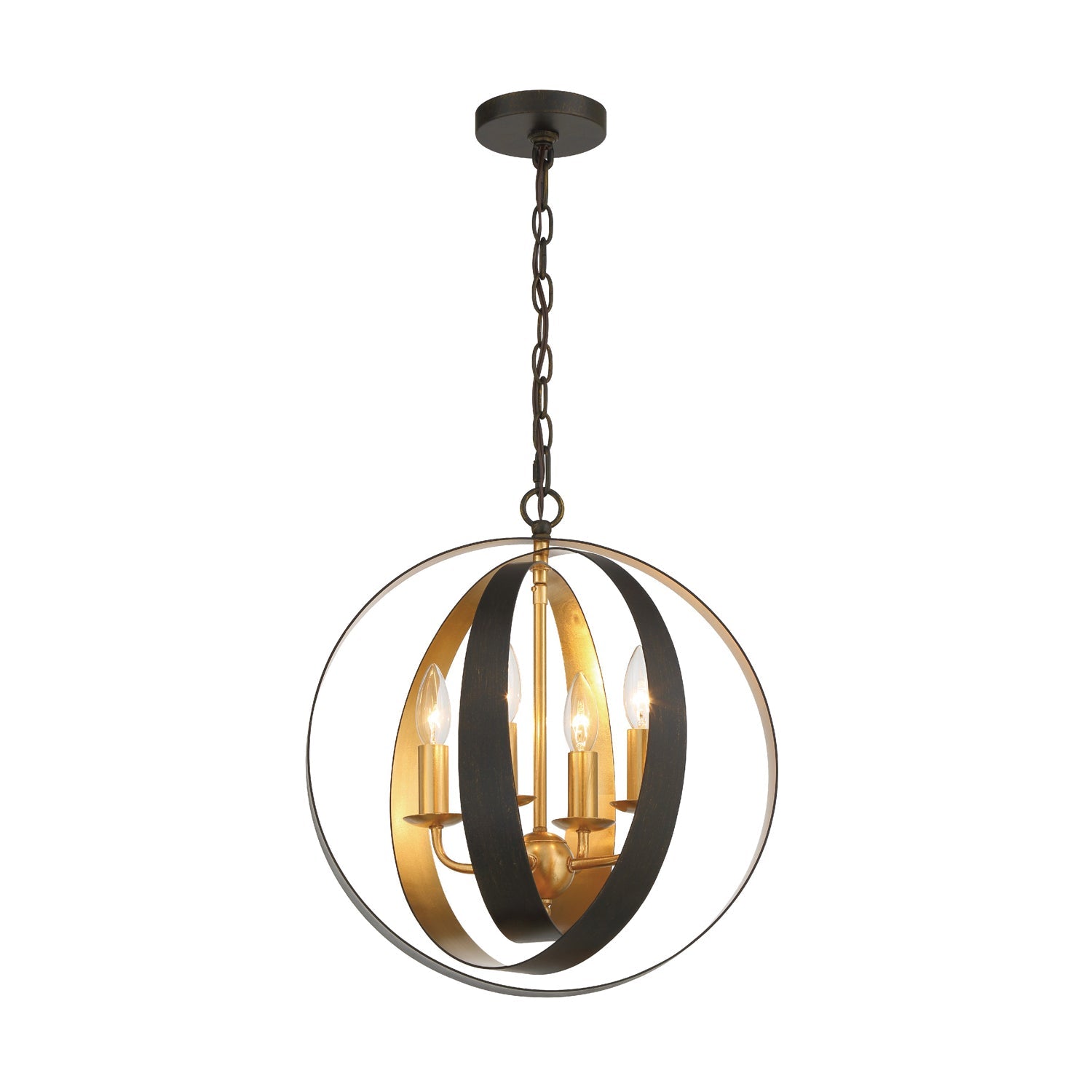 Spheres of steel intertwine creating the industrial Luna collection. A two toned finish allow the orb fixture to glow from within. The industrial wrought iron bring a rustic elegance to any room of the house including a bedroom, living room, dining room, or even over a kitchen island!