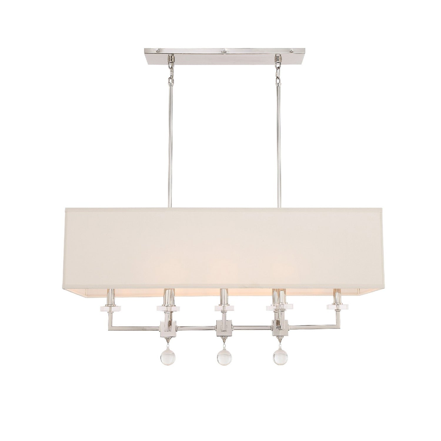 The Paxton collection combines geometrically arranged chunky glass bobeches with a frame of super-sleek, tapered crystal column ending with a single hanging glass ball. The delicate lines of the shapely frame, combined with the precisely balanced arms and simple, tailored shade, create a clean, transitional feeling with a distinct, mid-century modern flair. Stylish, modern and minimal, Paxton brings luxurious appeal to a variety of interior spaces.