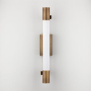 The Merced Wall Sconce by Troy Lighting, finished in elegant Patina Brass, combines sophistication with functionality. This stunning fixture features two integrated LED lamps with a total wattage of 10W, delivering a warm color temperature of 2700K and an impressive lumen output of 225. Measuring 2.75 inches in width and standing 23.50 inches tall with a 4-inch extension, it is perfect for enhancing any space. With a CRI of 90, it offers exceptional color rendering, while being ETL Damp rated makes it suitable for areas prone to moisture.