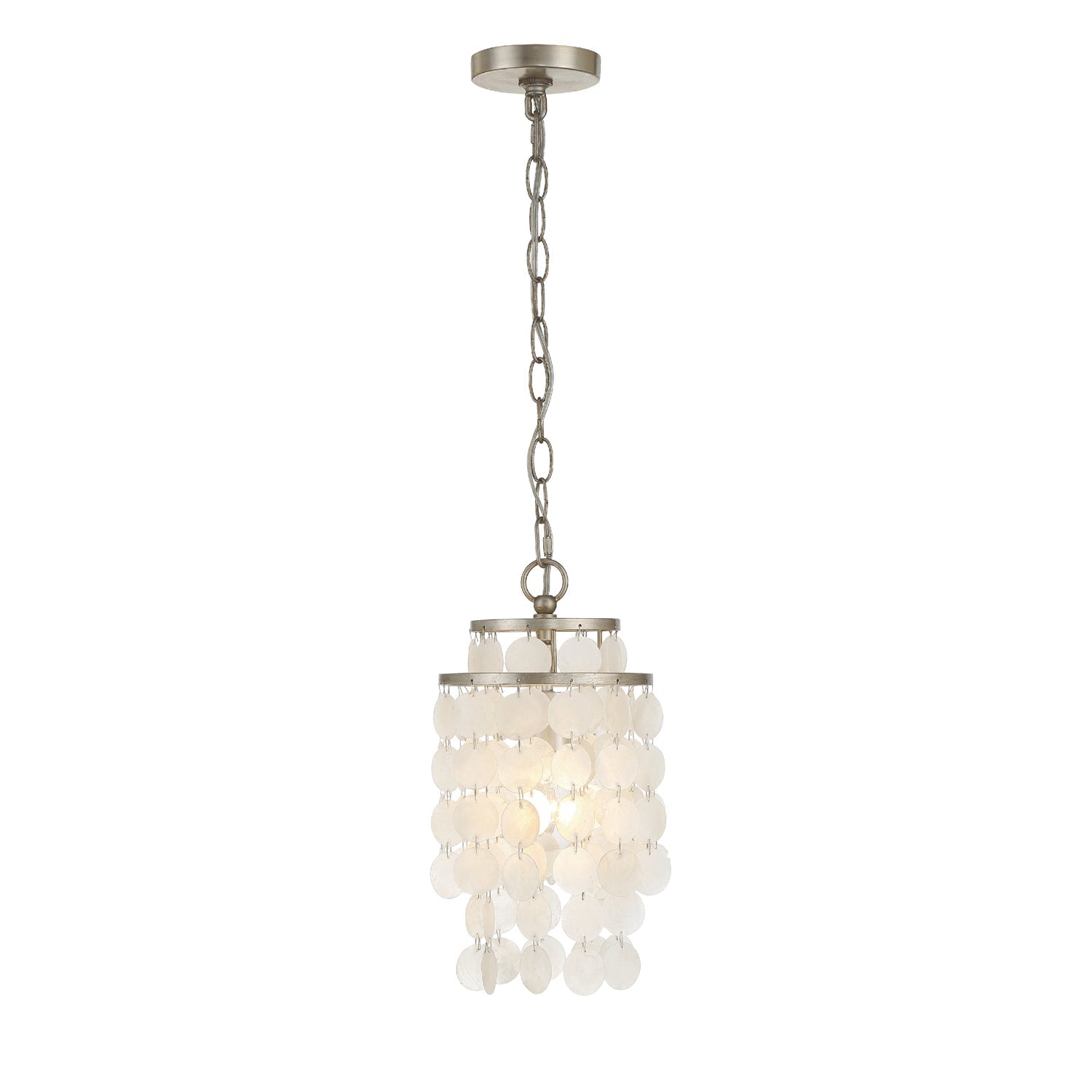 The Brielle Collection is an organic mix of glamour and elegance. The hand painted metal finish offset organic, natural textured Capiz shells to form the luminous elegance of this fixture.