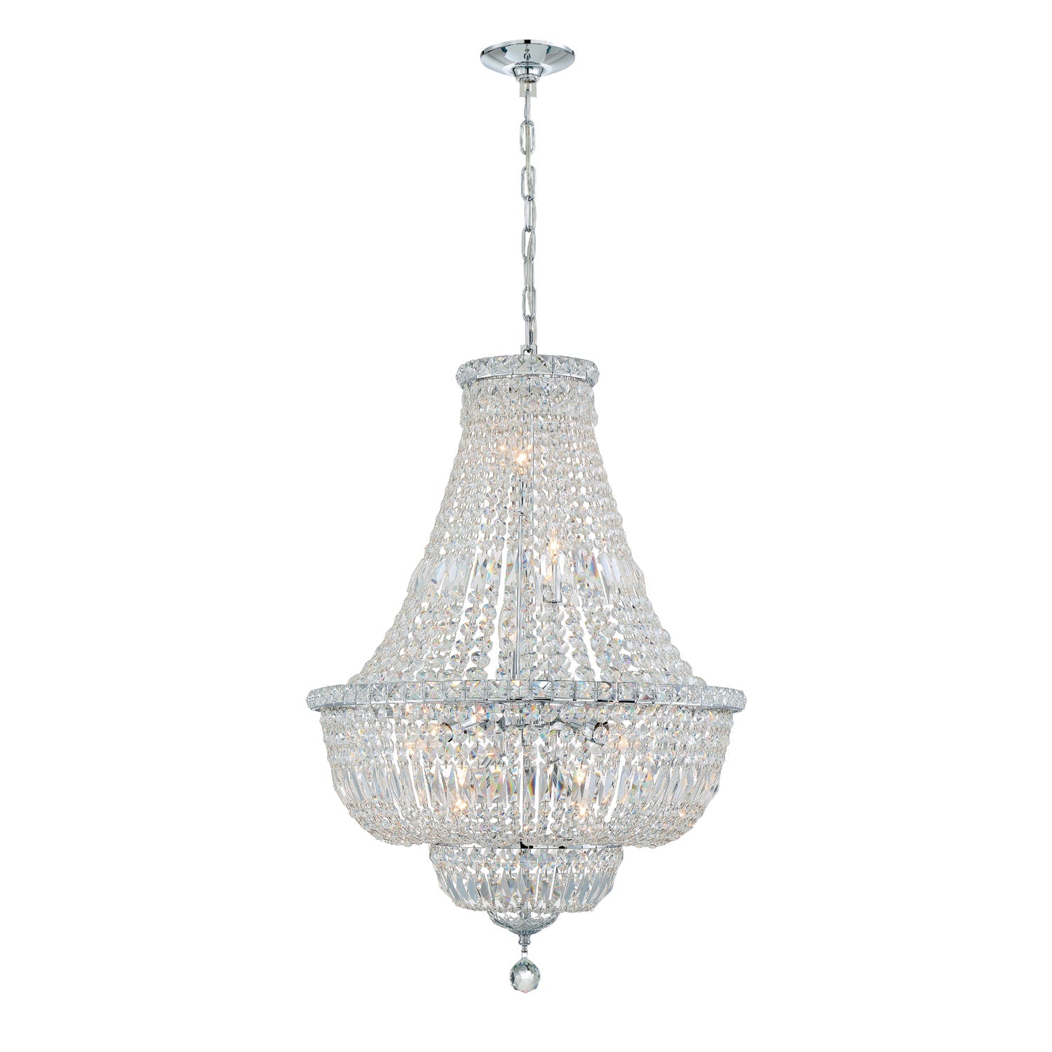 It doesn’t get more glamorous than a crystal chandelier. It will be hard to ignore the Roslyn fixture when you walk into a room. Draped in an abundance of faceted cut crystal jewels, this contemporary collection is a perfect statement to a living room, hallway, bathroom, or entry.